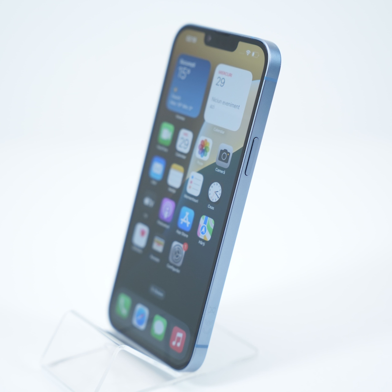 Ecran: 6.7 Procesor: Apple A15 Bionic Memorie RAM: 6GB Memorie interna: 256GB Camera Foto: Principala 12 MPx, Frontala 12 MPx Stare retea: Liber de rețea Accesorii: Incarcator 83% 910 CICLURI