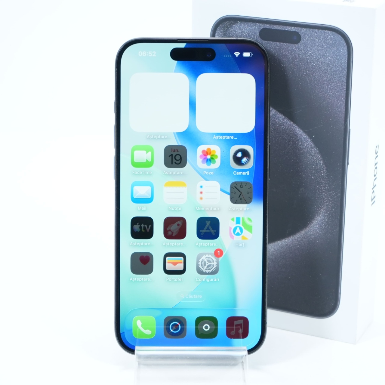 Ecran: 6.1, Refresh Rate 120 Hz Procesor: Apple A17 Pro Memorie RAM: 8GB Memorie interna: 128GB Camera Foto: Principala 48 MPx, Frontala 12 MPx Stare retea: Liber de rețea