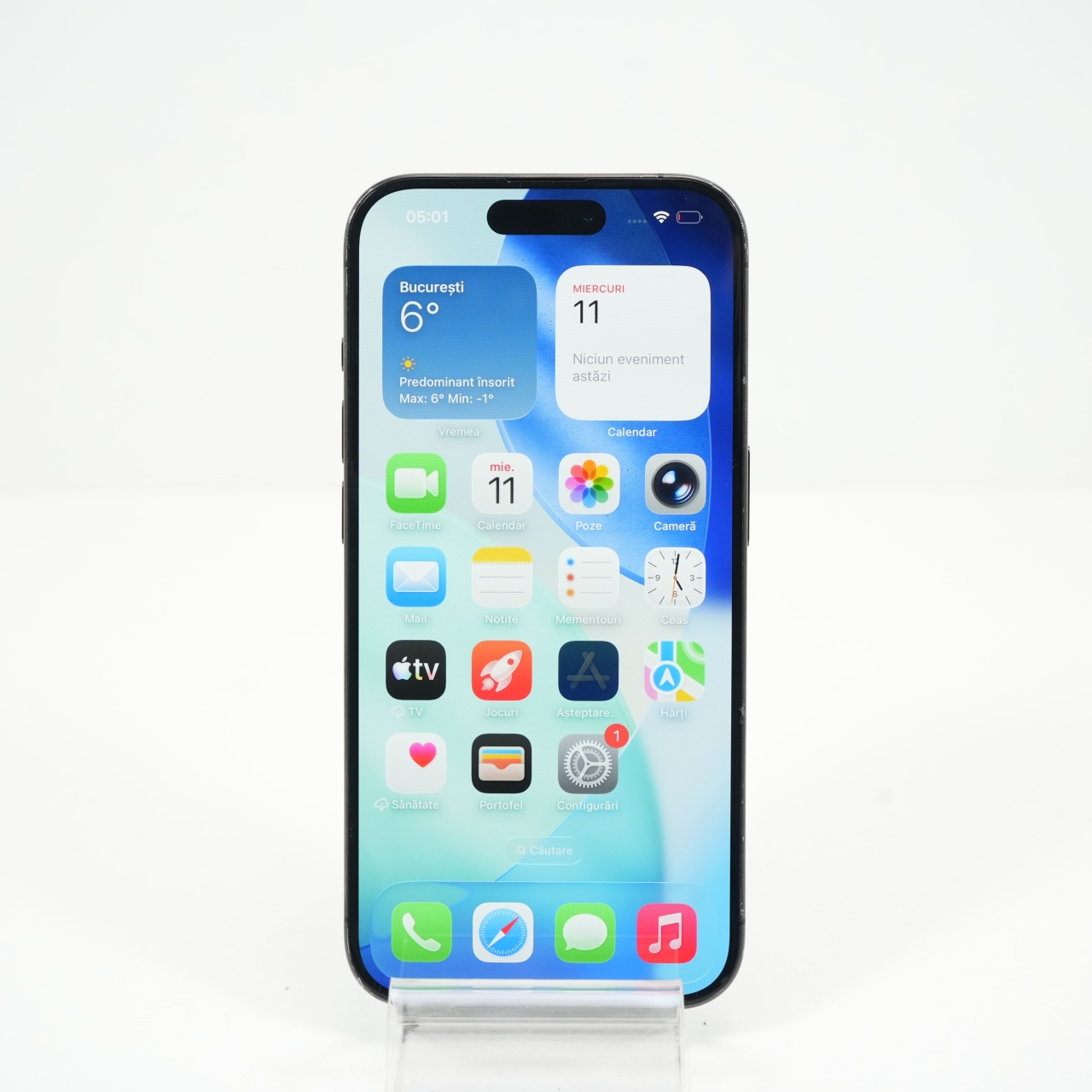 Ecran: 6.1, Refresh Rate 120 Hz Procesor: Apple A17 Pro Memorie RAM: 8GB Memorie interna: 256GB Camera Foto: Principala 48 MPx, Frontala 12 MPx Stare retea: Liber de retea