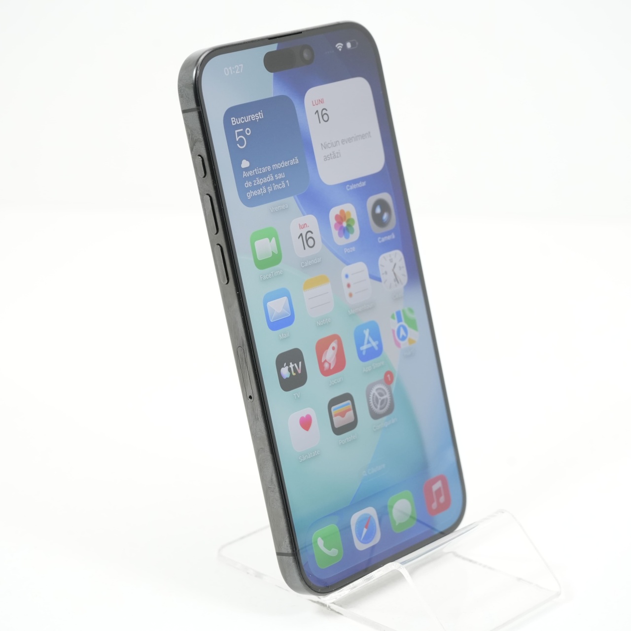 Ecran: 6.7, Refresh Rate 120 Hz Procesor: Apple A17 Pro Memorie RAM: 8 GB Memorie interna: 1TB Camera foto: Principala 48 MPx, Frontala 12 MPx Stare retea: Liber de rețea