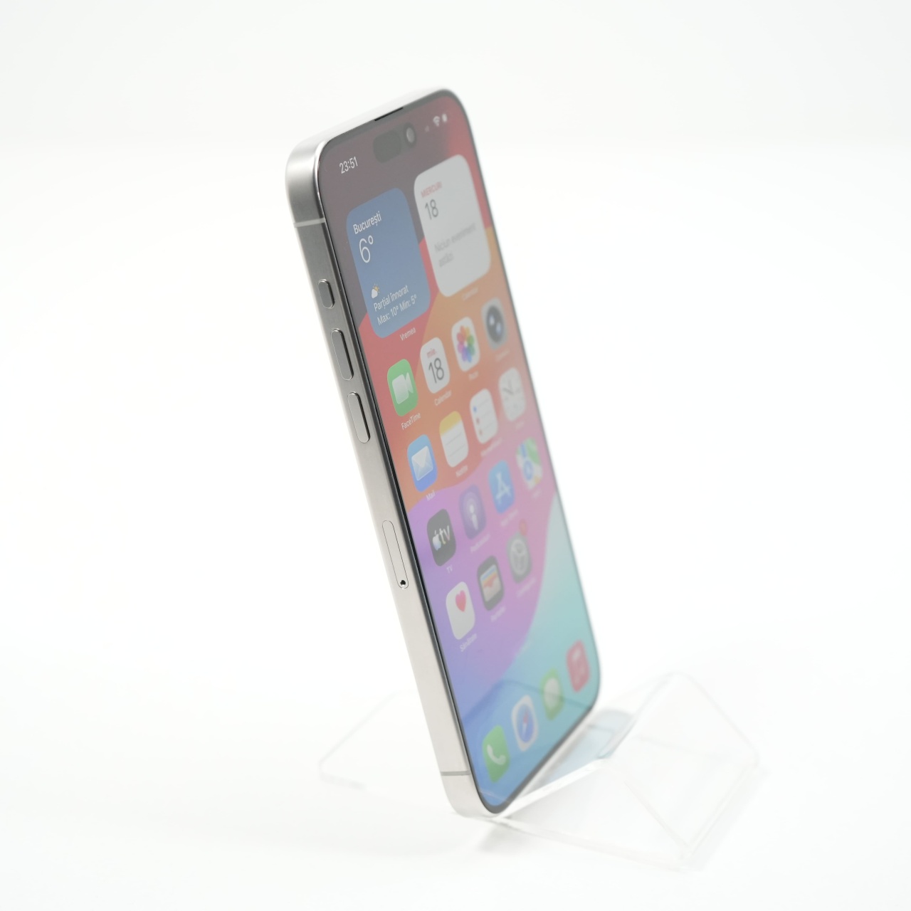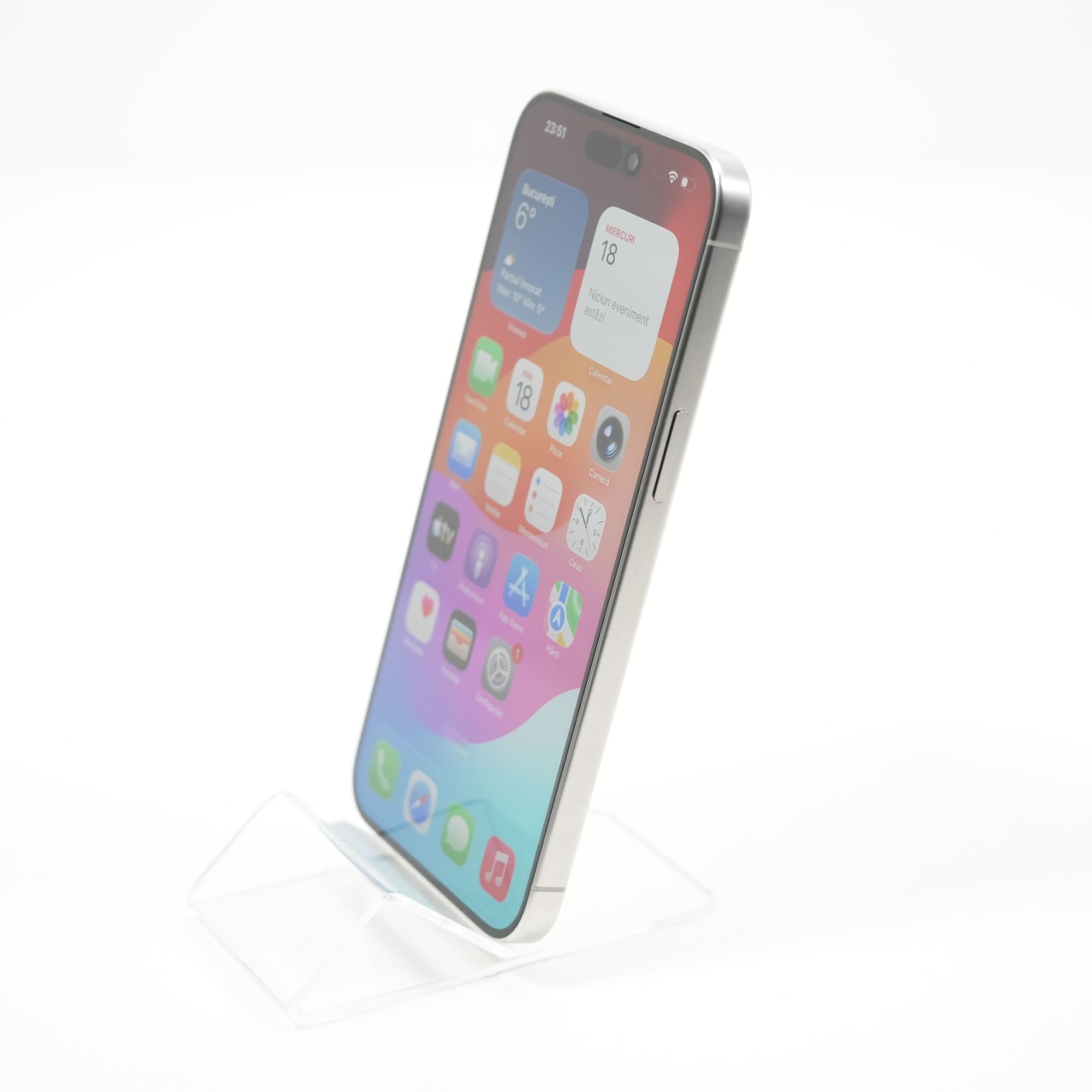 Ecran: 6.7, Refresh Rate 120 Hz Procesor: Apple A17 Pro Memorie RAM: 8 GB Memorie interna: 1TB Camera foto: Principala 48 MPx, Frontala 12 MPx Stare retea: Liber de rețea
