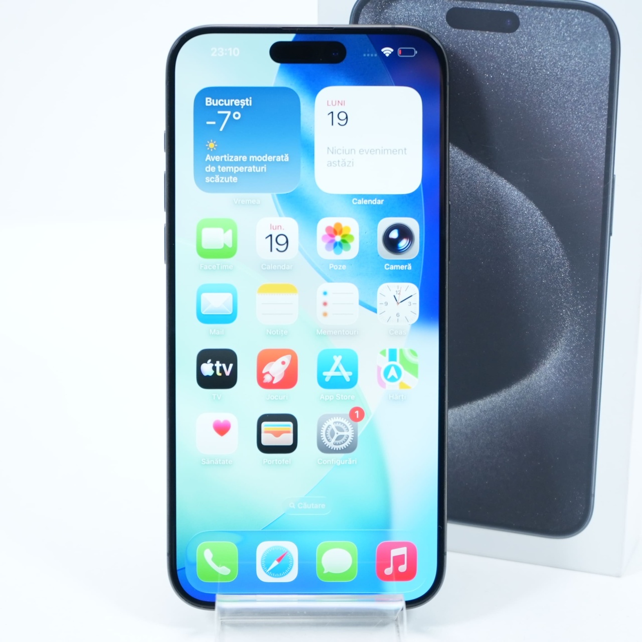 Ecran: 6.7, Refresh Rate 120 Hz Procesor: Apple A17 Pro Memorie RAM: 8 GB Memorie interna: 256GB Camera foto: Principala 48 MPx, Frontala 12 MPx Stare retea: Liber de rețea