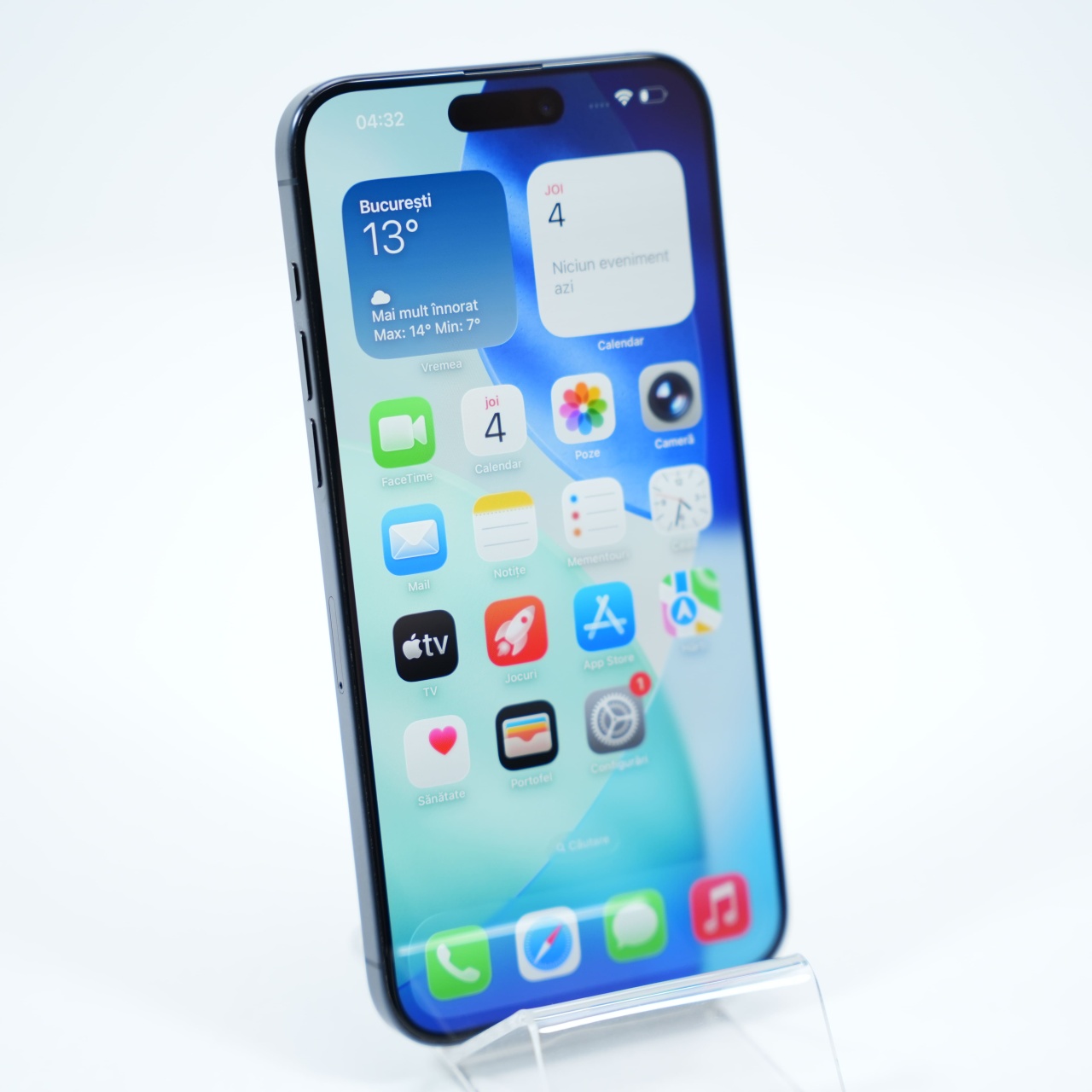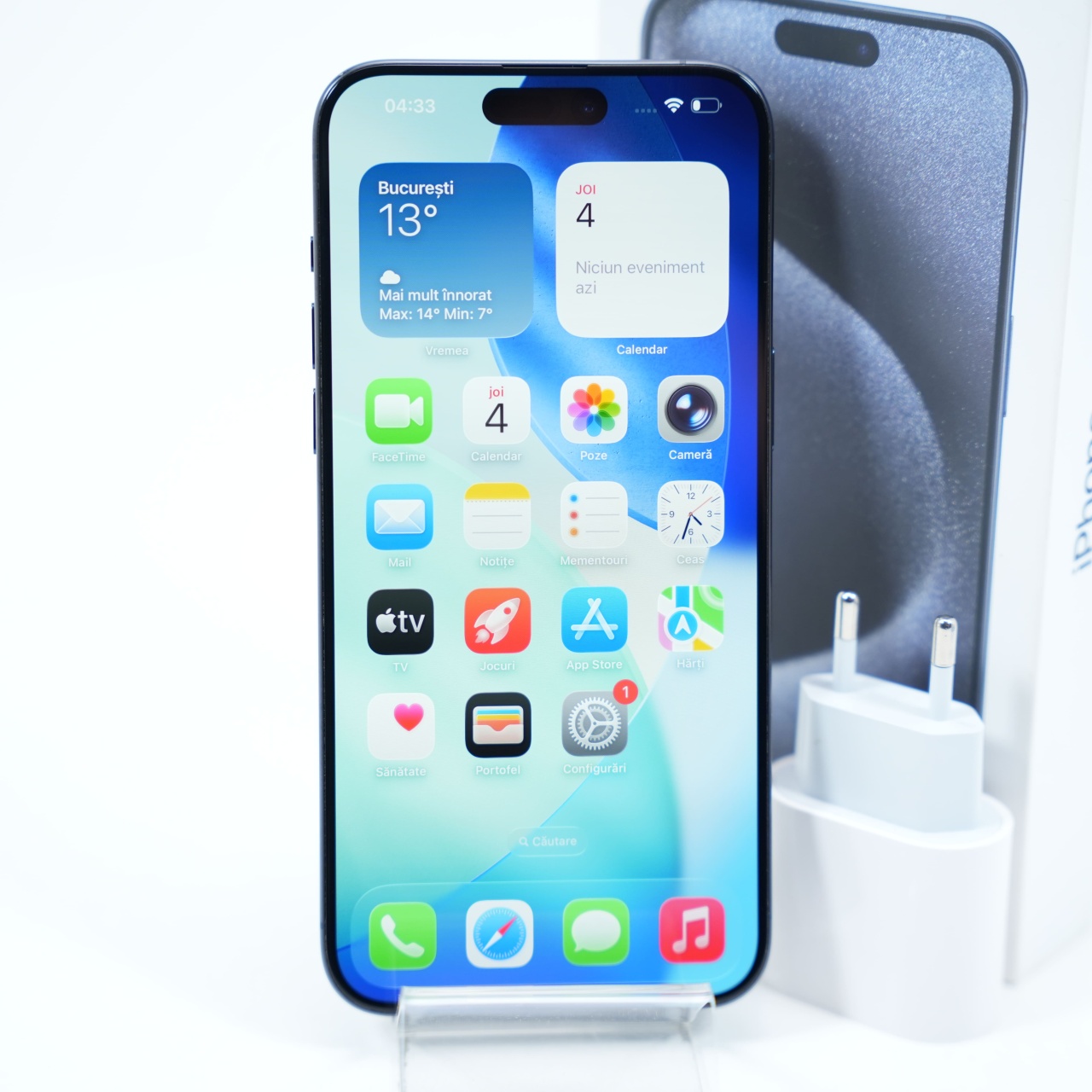 Ecran: 6.7, Refresh Rate 120 Hz Procesor: Apple A17 Pro Memorie RAM: 8 GB Memorie interna: 256GB Camera foto: Principala 48 MPx, Frontala 12 MPx Stare retea: Liber de rețea