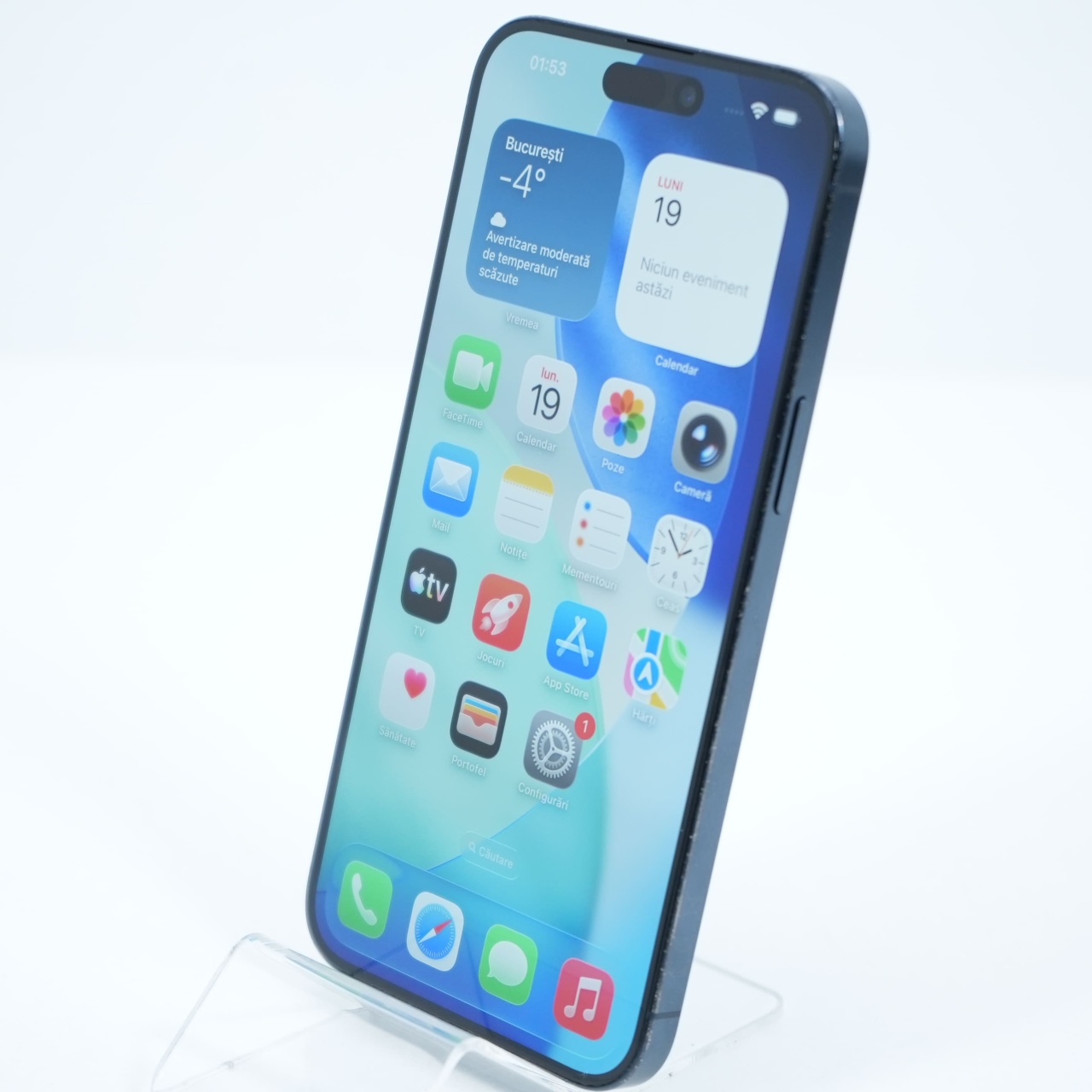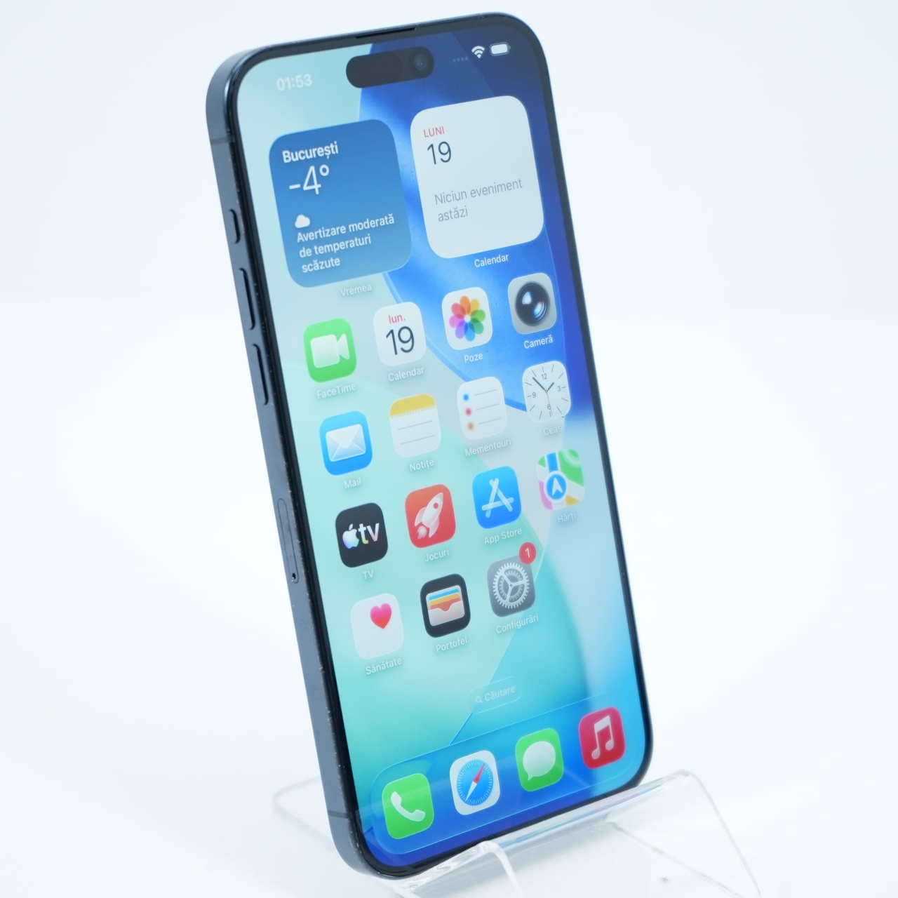 Ecran: 6.7, Refresh Rate 120 Hz Procesor: Apple A17 Pro Memorie RAM: 8 GB Memorie interna: 256GB Camera foto: Principala 48 MPx, Frontala 12 MPx Stare retea: Liber de rețea