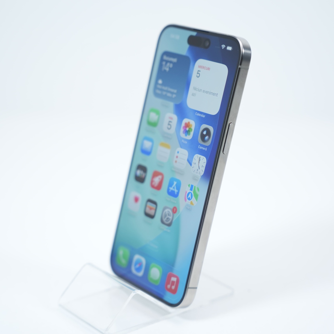 Ecran: 6.7, Refresh Rate 120 Hz Procesor: Apple A17 Pro Memorie RAM: 8GB Memorie interna: 256GB Camera foto: Principala 48 MPx, Frontala 12 MPx Stare retea: Liber de rețea