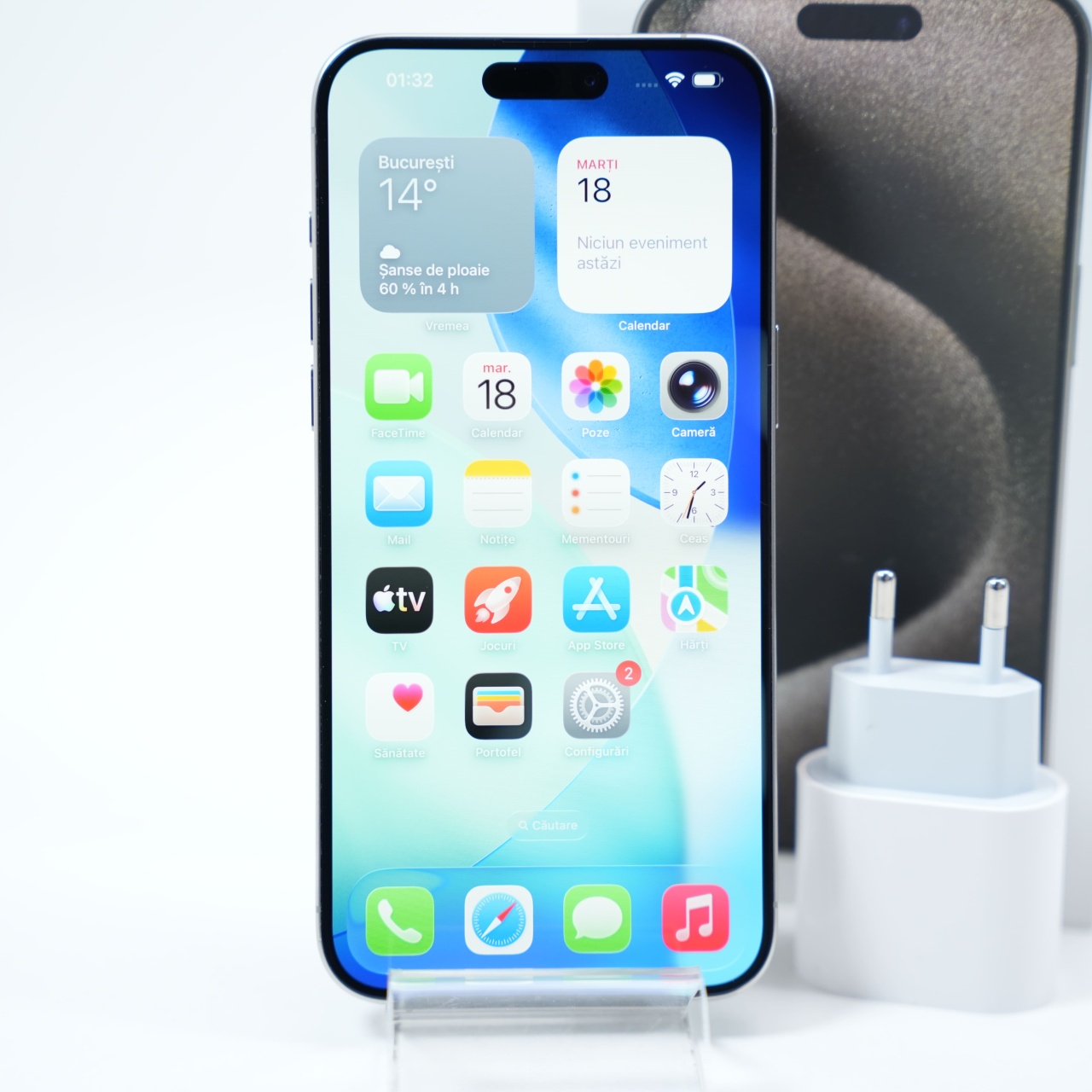 Ecran: 6.7, Refresh Rate 120 Hz Procesor: Apple A17 Pro Memorie RAM: 8GB Memorie interna: 256GB Camera foto: Principala 48 MPx, Frontala 12 MPx Stare retea: Liber de rețea