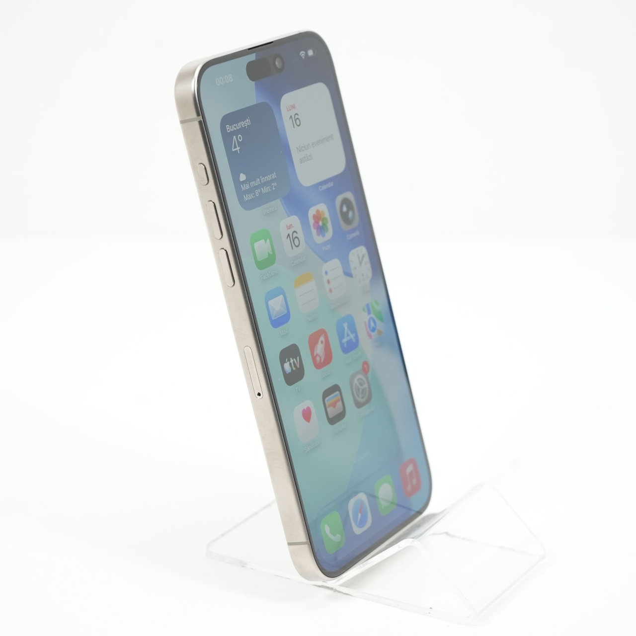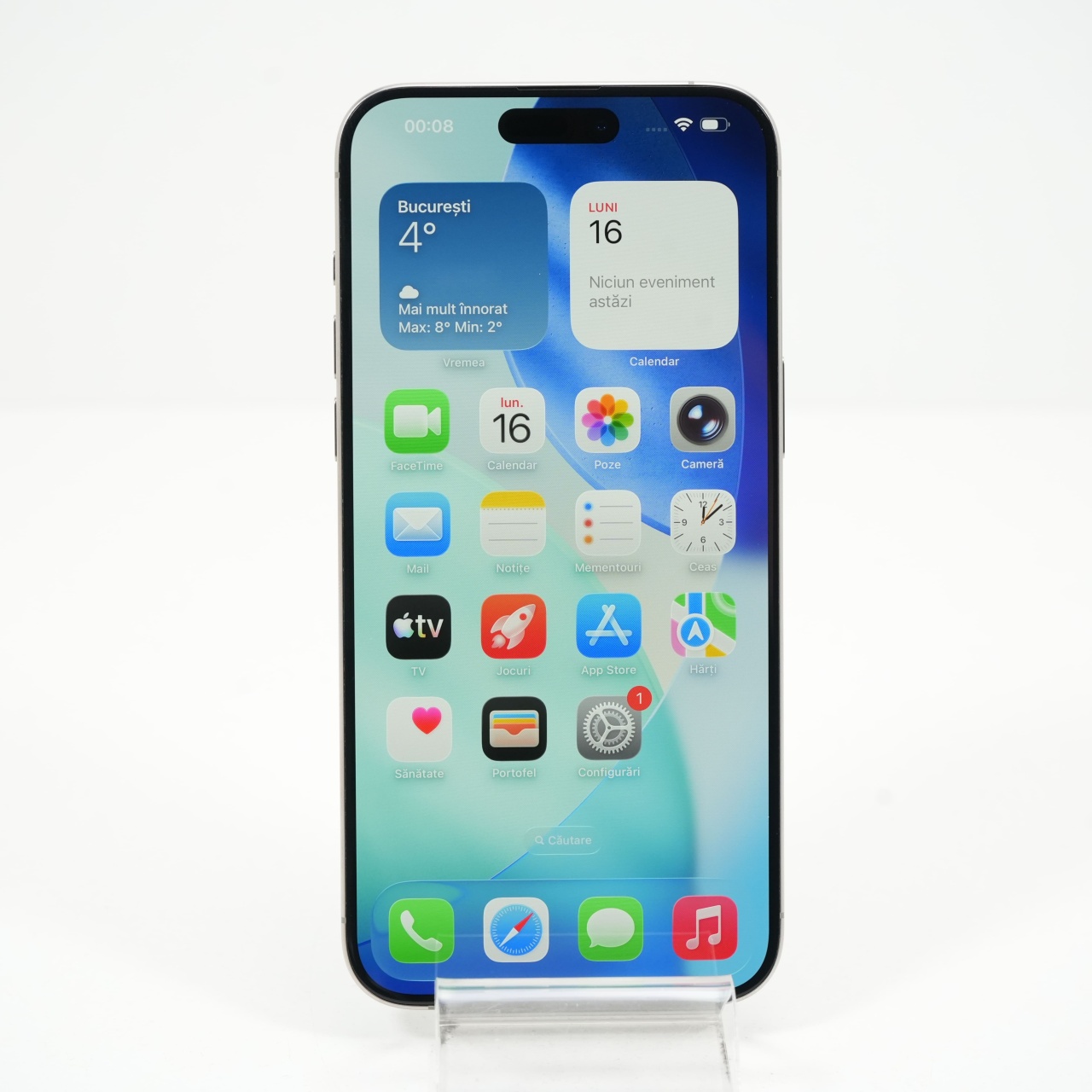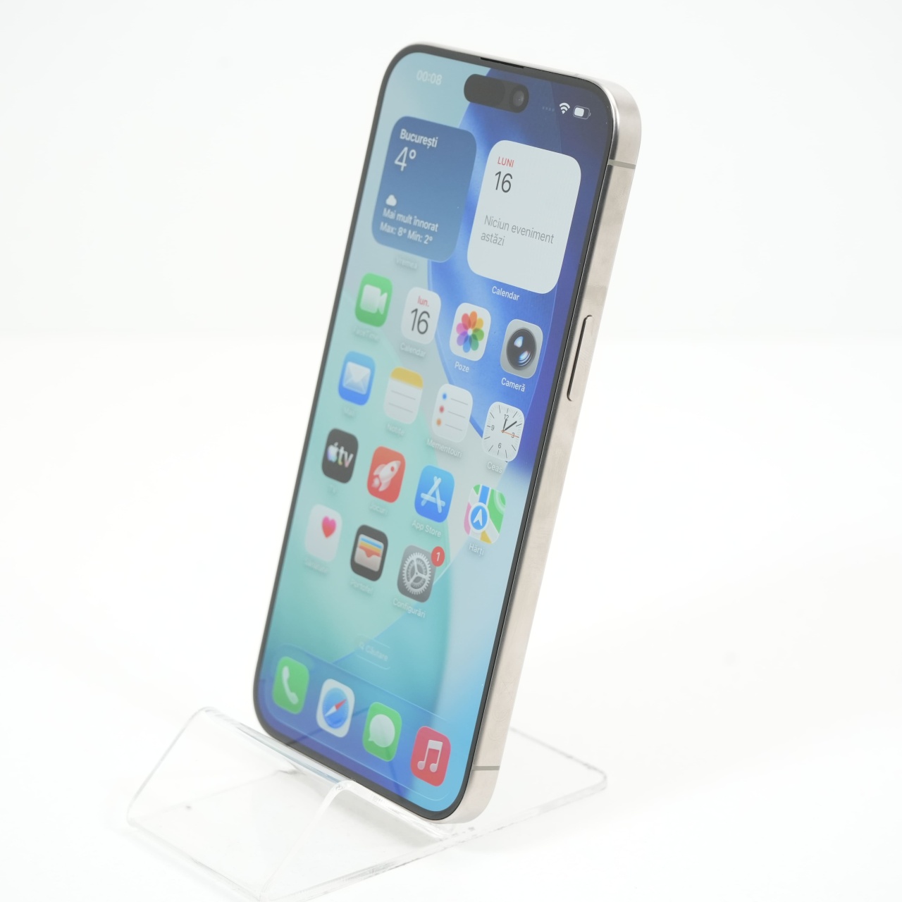 Ecran: 6.7, Refresh Rate 120 Hz Procesor: Apple A17 Pro Memorie RAM: 8 GB Memorie interna: 512GB Camera foto: Principala 48 MPx, Frontala 12 MPx Stare retea: Liber de rețea