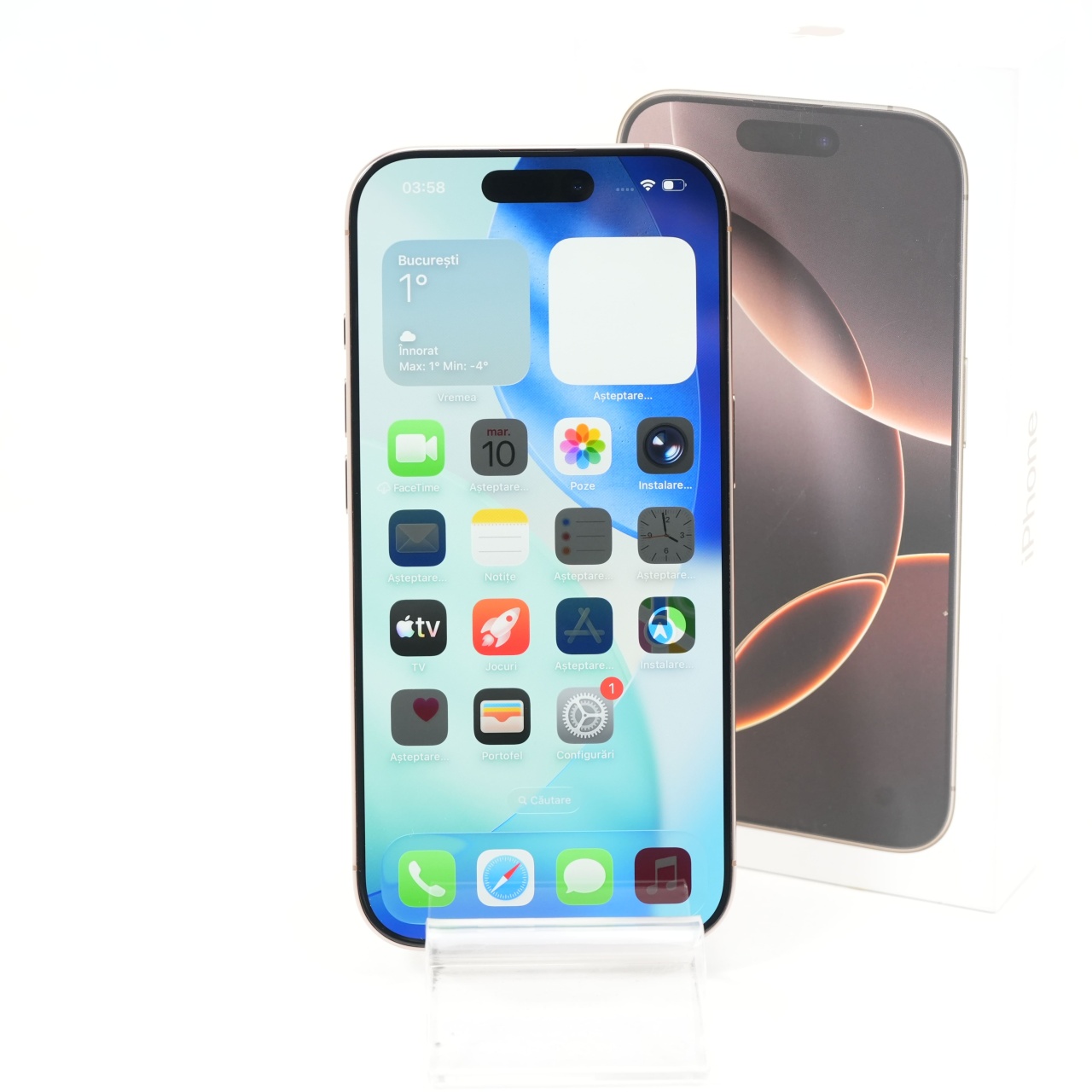 Ecran: OLED de 6.3, Refresh Rate 120 Hz Procesor: Apple A18 Pro Memorie RAM: 8GB Memorie interna: 256GB Camera Foto: Principala 48 MPx, Frontala 12 MPx Stare retea: Liber de rețea