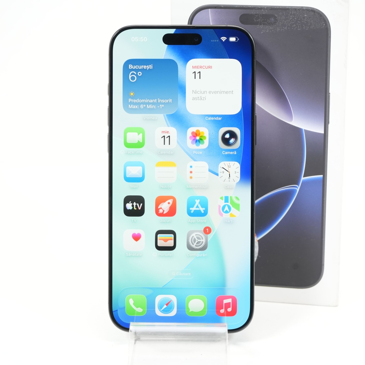 Ecran: OLED de 6.9, Refresh Rate 120 Hz Procesor: Apple A18 Pro Memorie RAM: 8 GB Memorie interna: 1TB Camera Foto: Principala 48 MPx, Frontala 12 MPx Stare retea: Liber de rețea
