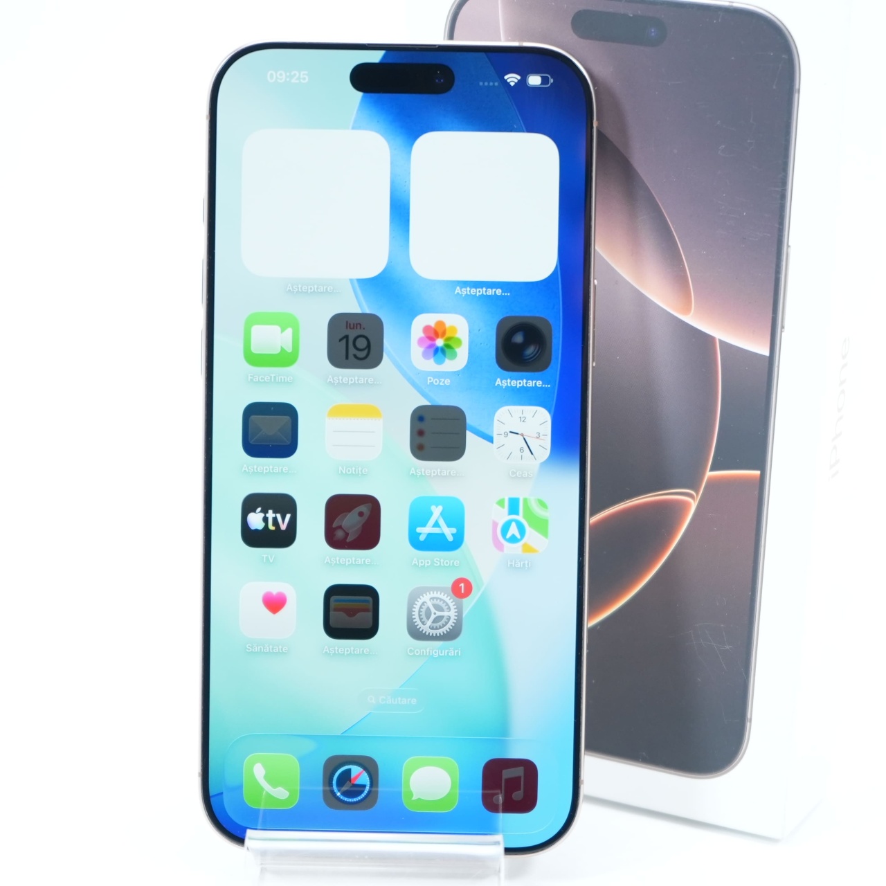 Ecran: OLED de 6.9, Refresh Rate 120 Hz Procesor: Apple A18 Pro Memorie RAM: 8 GB Memorie interna: 256GB Camera Foto: Principala 48 MPx, Frontala 12 MPx Stare retea: Liber de rețea 93% 346 cicluri