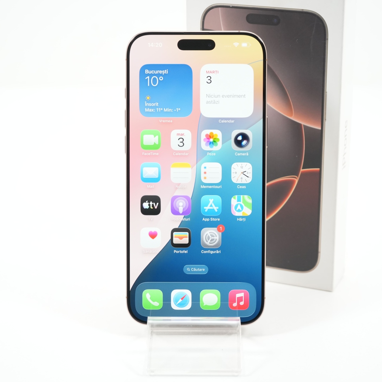 Ecran: OLED de 6.9, Refresh Rate 120 Hz Procesor: Apple A18 Pro Memorie RAM: 8GB Memorie interna: 256GB Camera Foto: Principala 48 MPx, Frontala 12 MPx Stare retea: Liber de rețea