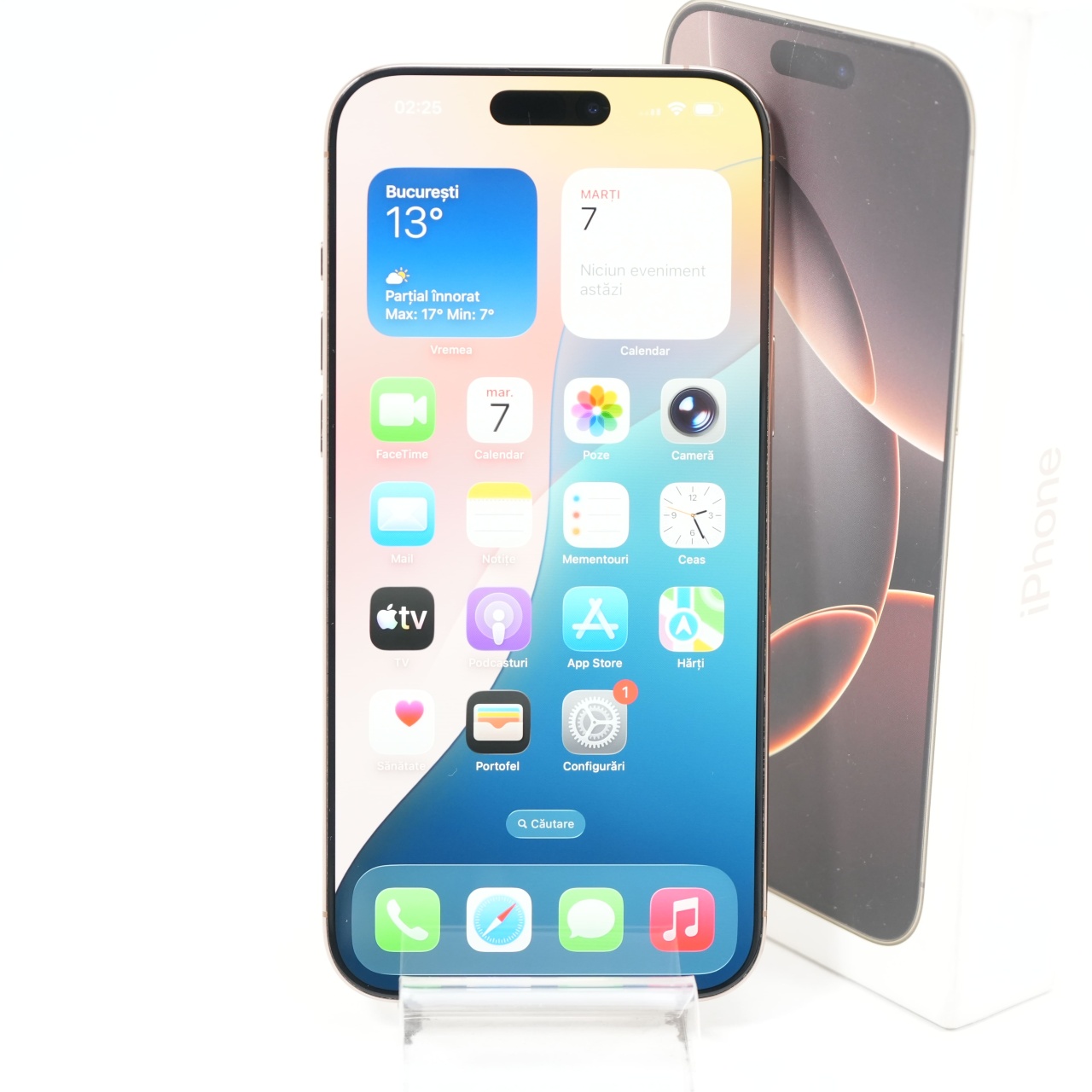 Ecran: OLED de 6.9, Refresh Rate 120 Hz Procesor: Apple A18 Pro Memorie RAM: 8GB Memorie interna: 256GB Camera Foto: Principala 48 MPx, Frontala 12 MPx Stare retea: Liber de rețea