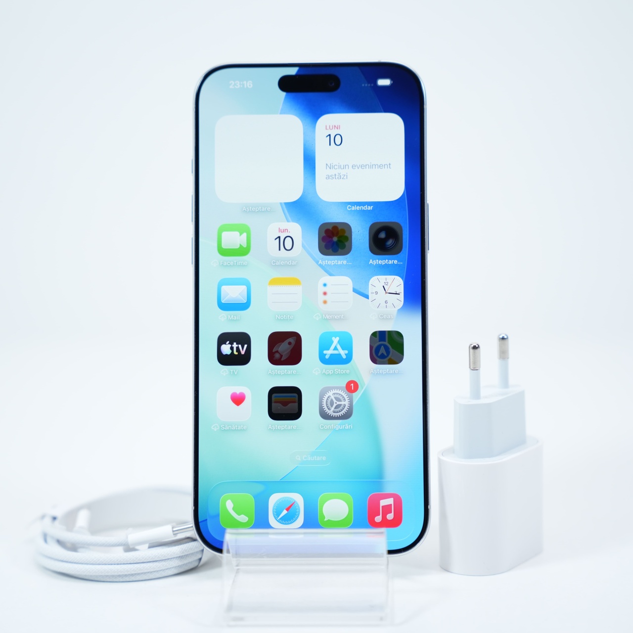 Ecran: OLED de 6.9, Refresh Rate 120 Hz Procesor: Apple A18 Pro RAM: 8 GB Memorie interna: 256 GB Camera Foto: Principala 48 MPx, Frontala 12 MPx Stare retea: Liber de retea