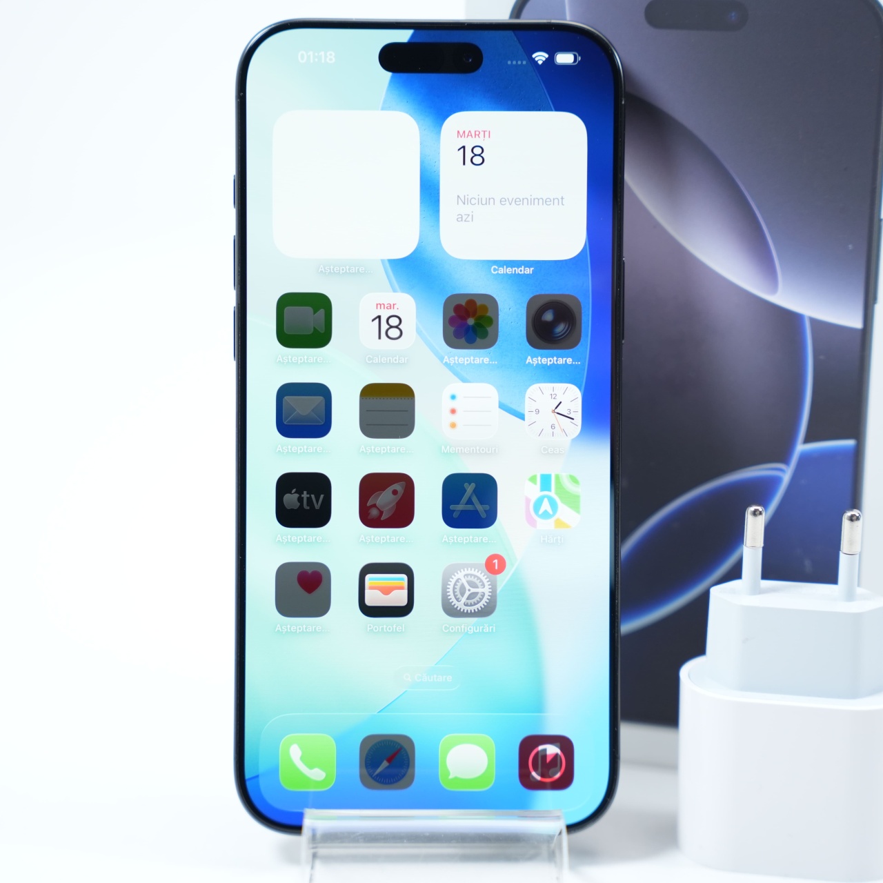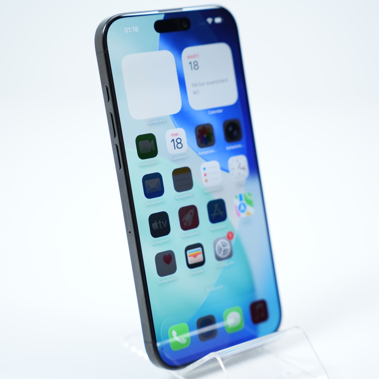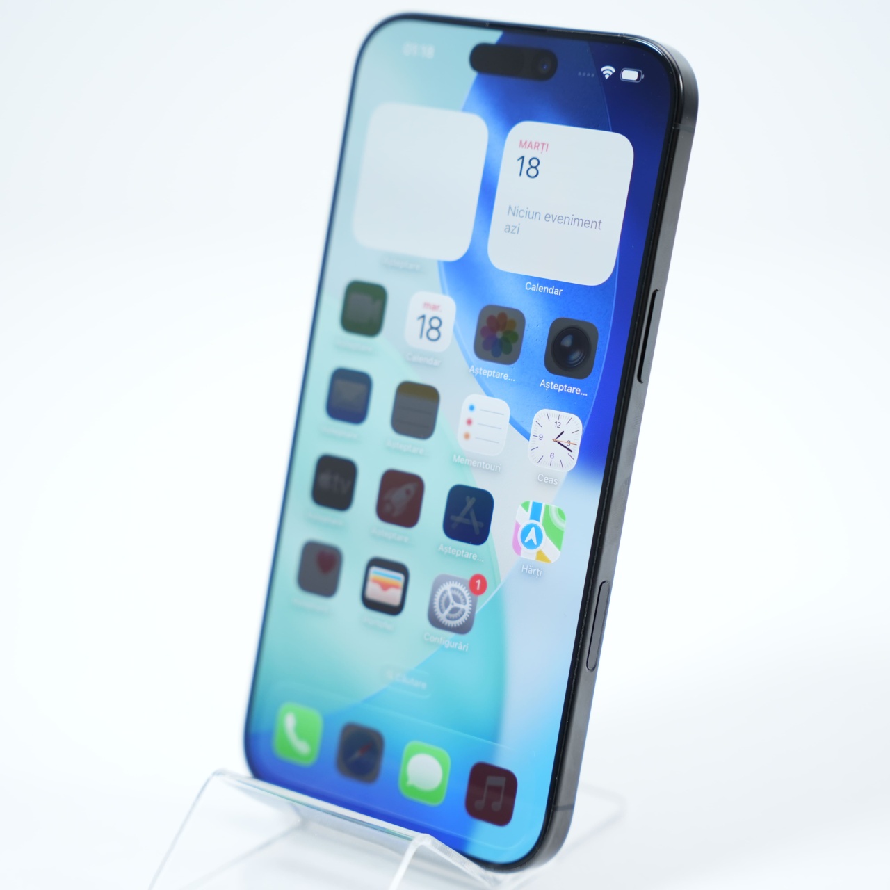 Ecran: OLED de 6.9, Refresh Rate 120 Hz Procesor: Apple A18 Pro Memorie RAM: 8GB Memorie interna: 256GB Camera Foto: Principala 48 MPx, Frontala 12 MPx Stare retea: Liber de rețea