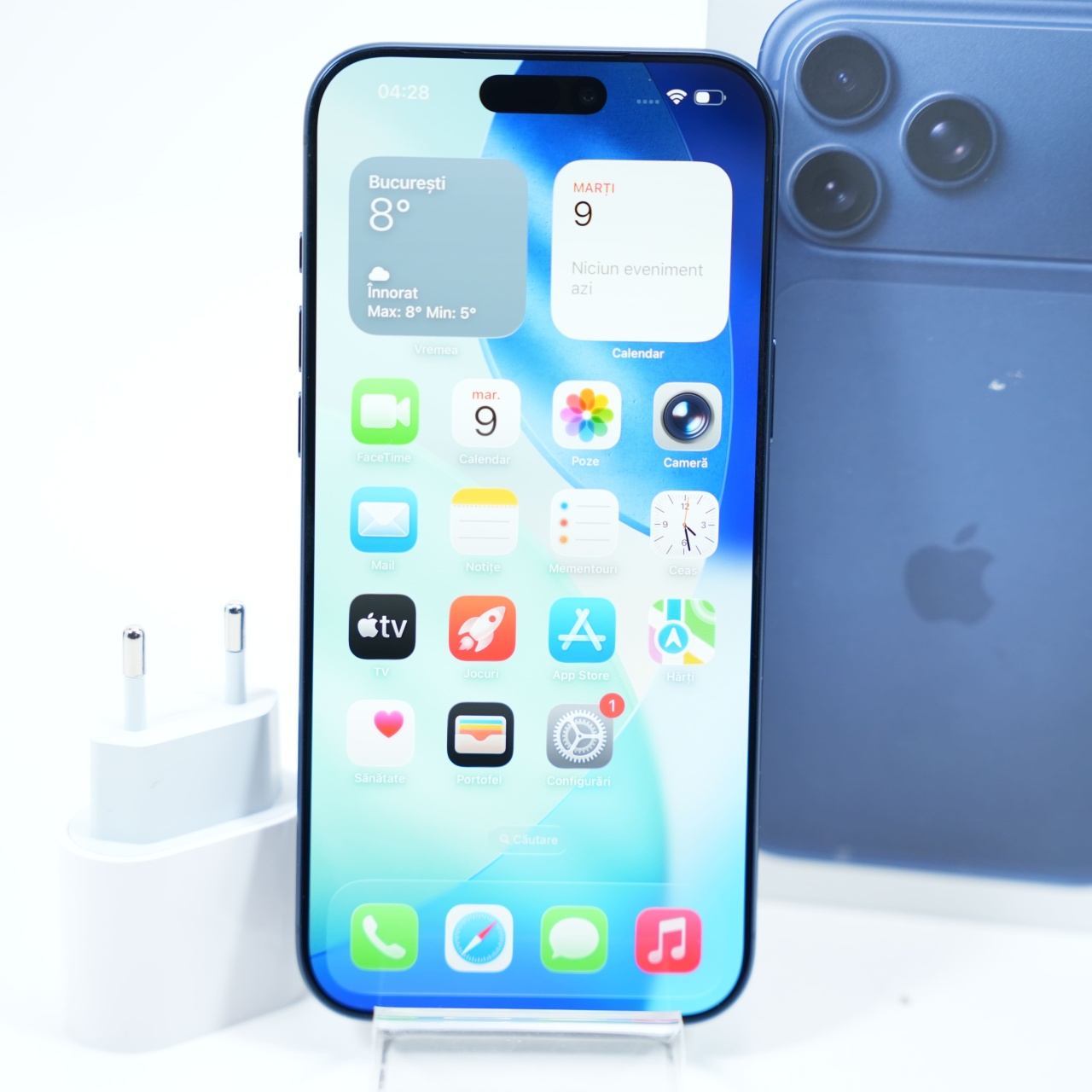 Ecran: OLED 6.9, Refresh Rate 120 Hz Procesor: Apple A19 Pro Memorie RAM: 12 GB Memorie interna: 256GB Camera Foto: Principala 48 MPx, Frontala 18 MPx Stare retea: Liber de rețea