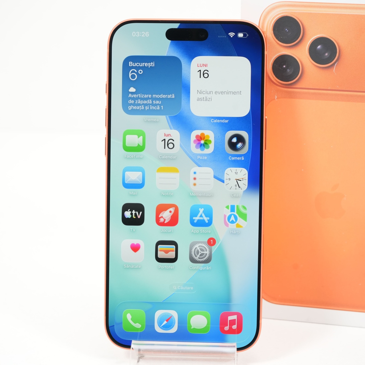 Ecran: OLED 6.9, Refresh Rate 120 Hz Procesor: Apple A19 Pro Memorie RAM: 12 GB Memorie interna: 512GB Camera Foto: Principala 48 MPx, Frontala 18 MPx Stare retea: Liber de rețea