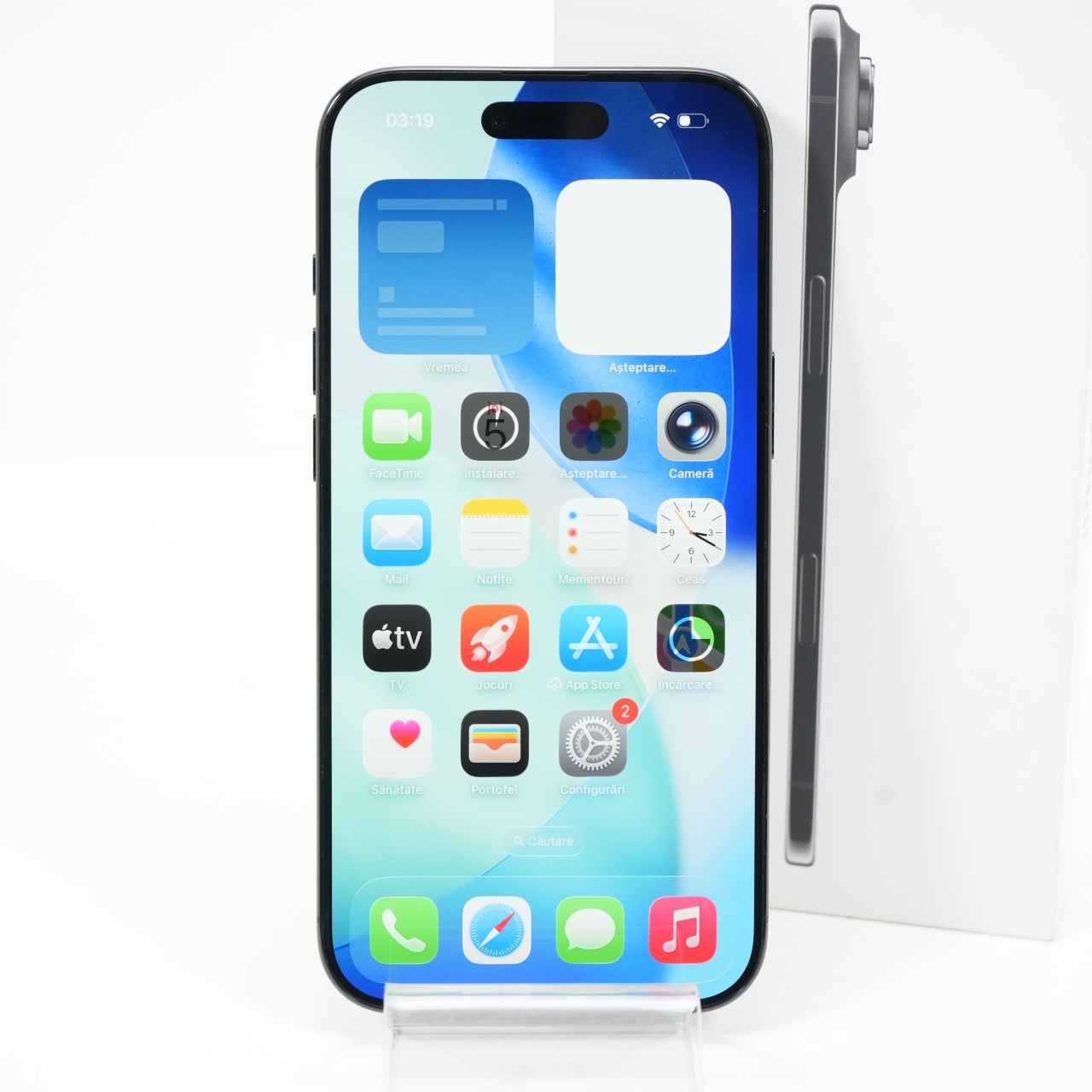 Ecran: OLED 6.5, Refresh Rate 120 Hz Procesor: Apple A19 Pro Memorie RAM: 12 GB Memorie interna: 256GB Camere foto: Principala 48 MPx, Frontala 18 MPx Stare retea: Doar e-SIM, Liber de rețea Accesorii: Cutie si incarcator Blacklist Status: Clean Baterie 100% cicluri 14