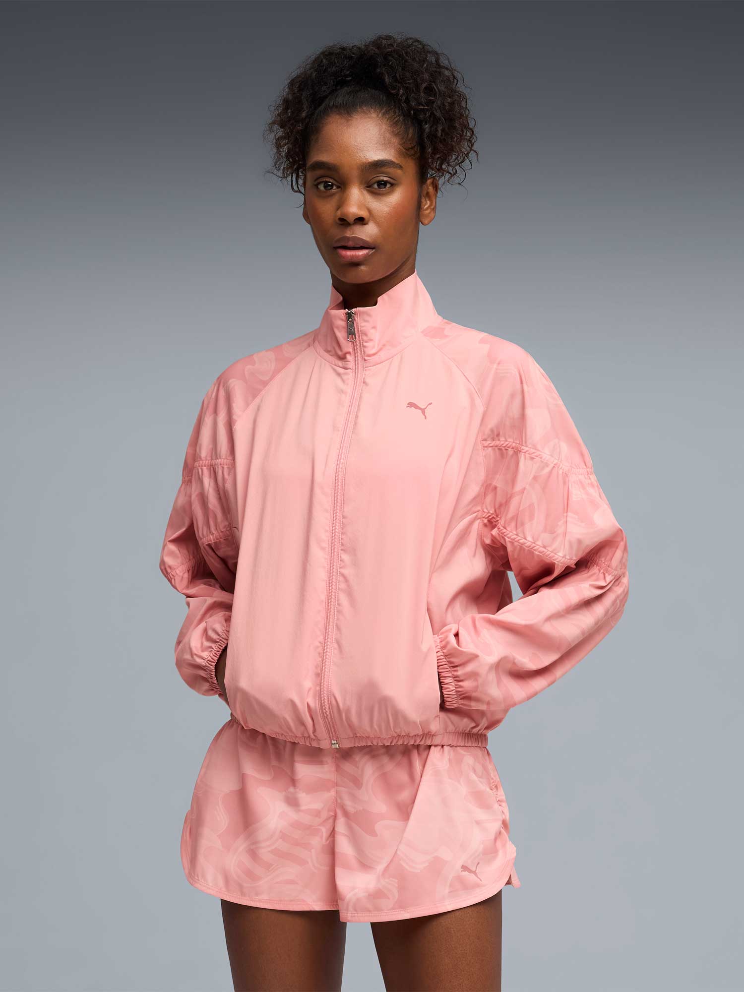 Bluza: • Inchidere cu fermoar si guler inalt • Doua buzunare frontale • Cu elastic in talie si mansete Pantaloni: • Talie elastica • Picioare drepte • Material: 55% bumbac, 45% poliester