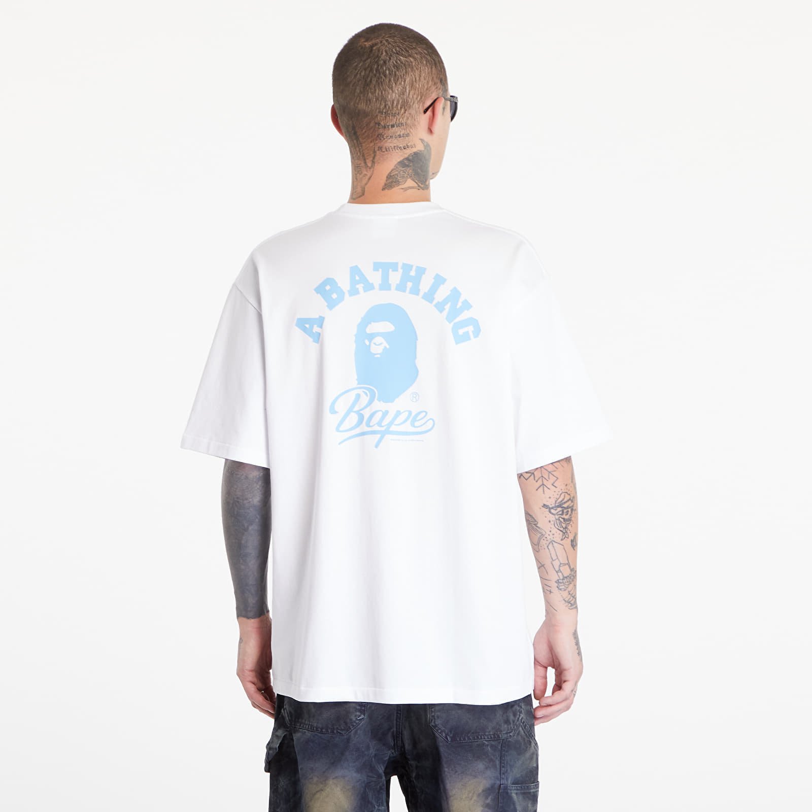 Tricou A BATHING APE Cursive College Logo Relaxed Fit Short Sleeve Tee White pentru 619 lei. Cod produs: 001TEK801303M WHT, material: 100% Bumbac