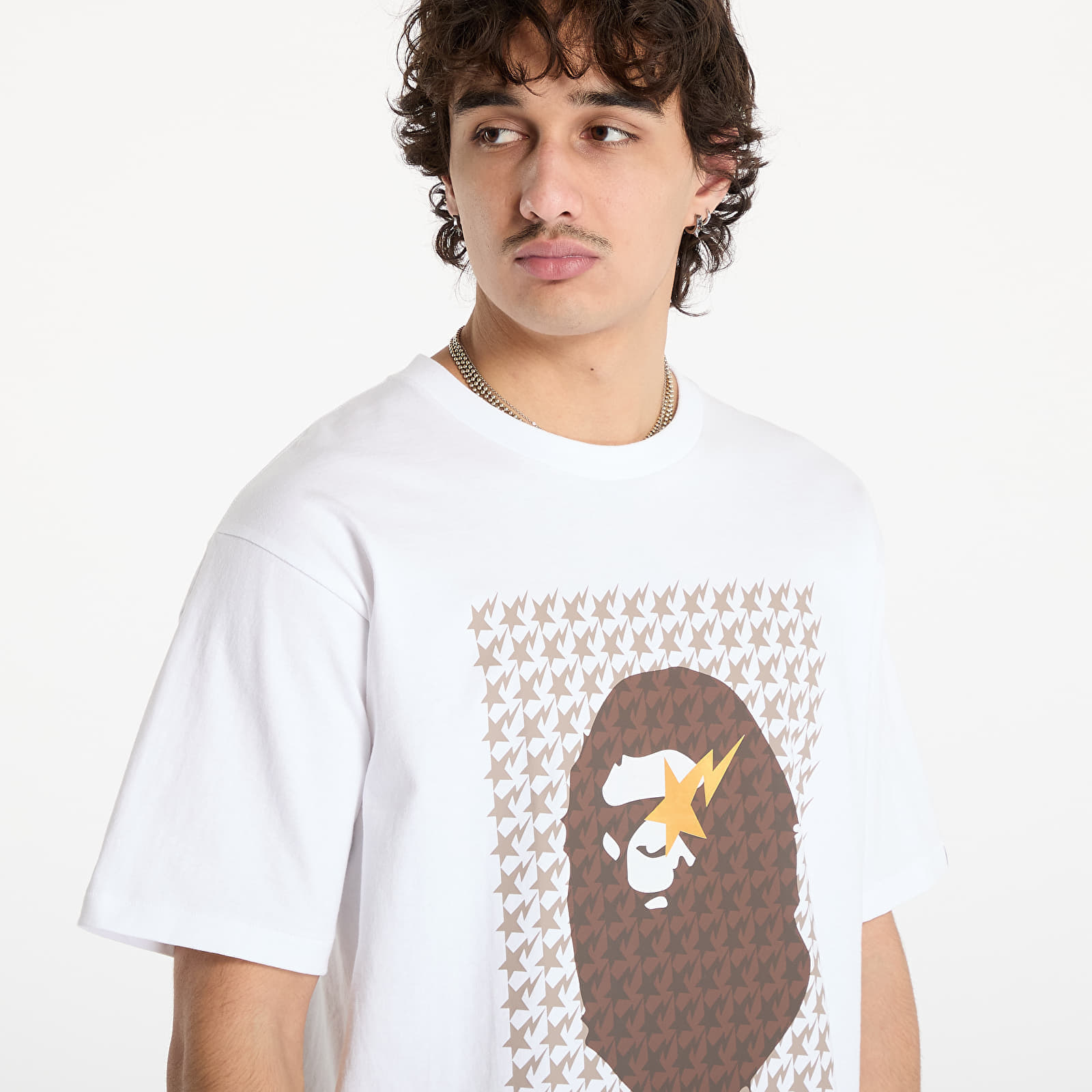Tricou A BATHING APE Sta Houndstooth Ape Head Tee White/ Brown pentru 489 lei. Cod produs: 001TEK801035M WH7, material: 100% Bumbac