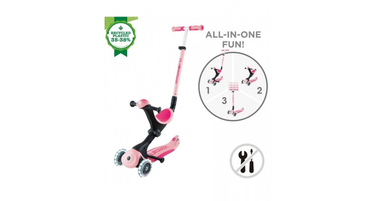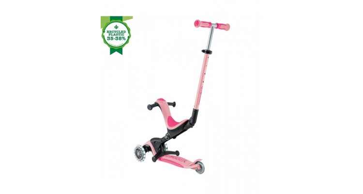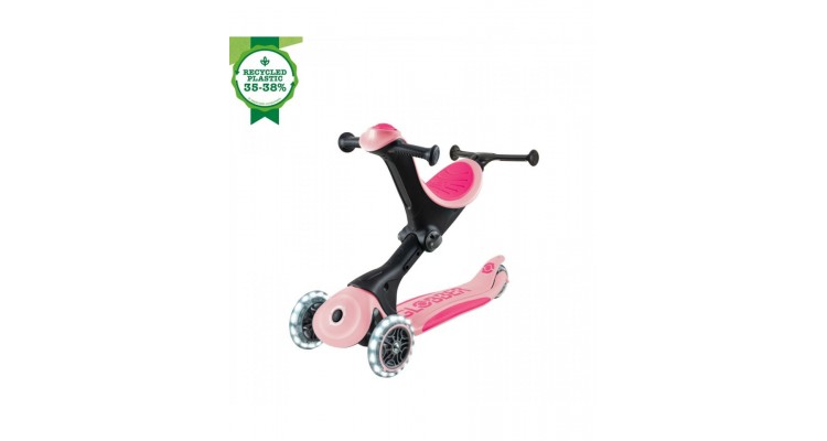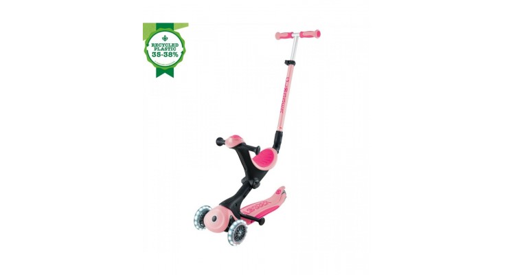 O lume mai verde pe roți: Trotineta Globber 4 in 1 Deluxe Lights, ECOLOGIC ajută familiile din întreaga lume să trăiască și să respire valorile și alegerile ecologice. Este fabricată din plastic 35-38% Global Recycled Standard și paie de grâu bio-sursă*. GO-UP ACTIVE ECOLOGIC este o trotinetă ecologică cu 3 roți și scaun pentru copii și copii mici, care se transformă în trotinetă de plimbare (15-36M), bicicletă de mers pe jos (15-36M) și trotinetă pentru copii mici (3-9Y+), având aceeași integritate structurală ca și originalul iconic, dar folosind mai multe materiale ecologice pentru un impact mai mic asupra mediului. Bucurați-vă de întâlniri de joacă prietenoase cu planeta cu un prieten din copilărie pentru anii următori: Mergeți la plimbare, cu bicicleta sau cu trotineta - doar mergeți, mergeți, mergeți pe plastic reciclat și paie de grâu bio-sursă! Trotineta Globber 4 in 1 Deluxe Lights, ECOLOGIC este fabricat cu 35 pana la 38% din plastic Global Recycled Standard (GRS) și paie de grâu bio-sursă*. GRS este un protocol internațional care verifică conținutul reciclat în produsele finale. Utilizarea plasticului GRS salvează tone de deșeuri de la gropile de gunoi și reduce impactul de mediu al producției. Paia de grâu este un bio-plastic obținut din deșeuri agricole. Acesta se sustrage din fluxul de deșeuri și este intrinsec durabil datorită compusului său lignină. Acest lucru permite trotinetelor noastre ECOLOGICE să își păstreze integritatea structurală cu un plastic bio-sursă care este 100% sigur pentru copii. Alege Globber. Alegeți mai ecologic! Trotineta Globber 4 in 1 Deluxe Lights, ECOLOGIC, este o trotineta EVOLUTIVA, 4 IN 1 ce se transforma usor, potrivit varstei copilului, aceasta putand fi folosita incepand cu varsta de 15 luni. Modul Ride-onModul ride-on permite părinților să manevreze trotineta cu un mâner pentru părinți, în timp ce copiii stau confortabil pe scaun. Copiii mici care încă își dezvoltă echilibrul și coordonarea necesare pentru a merge pe trotinetă independent pot să se bucure în continuare de distracția de a se plimba insa cu puțin ajutor! Modul Bicicletă fără pedaleConstruiește încrederea și îmbunătățește echilibrul micuțului tău cu modul bicicletă fără pedale! Cu bicicleta fără pedale, copiii pot folosi picioarele pentru a se împinge, obișnuindu-se treptat cu senzația unei biciclete și învățând cum să-și mențină echilibrul. Este o modalitate distractivă și sigură pentru copii de a învăța să meargă, construind încrederea de care au nevoie pentru a progresa rapid la mersul pe trotinetă obișnuită! Modul TrotinetăComută la modul trotinetă și folosește GO•UP ca pe o trotinetă ! Modul trotinetă permite micuțului tău să folosească GO•UP ca o trotinetă cu 3 roți pe măsură ce crește și devine mai încrezător—fără achiziții suplimentare necesare! Este modalitatea perfectă de a-ți tranziționa micuțul de la un ride-on la o trotinetă tradițională. Modul depozitare si transport Sistemul patentat de pliere permite plierea in mod cărucior a trotinetei pentru copii mici. Cu un buton lateral ușor de utilizat, transportați și depozitați cu ușurință Globber Go-Up 4 in 1 Deluxe Lights, ECOLOGIC în spații compacte. Sistem de blocare a direcției patentat Învață piciorușele să se echilibreze pe o trotineta 3-în-1 cu lumini in ritmul copilului tău. Globber Go-Up 4 in 1 Deluxe Lights, ECOLOGIC are un sistem de blocare a direcției patentat exclusiv Globber: Roțile din față sunt fixate într-un mișcare verticală înainte și înapoi, permițând copilului tău să practice echilibrul și să câștige încredere în mersul cu trotineta. Odată ce sunt gata să meargă, eliberează pur și simplu butonul de blocare a direcției pentru a putea începe să vireze roata și să meargă cu trotineta de unul singur! Design 100% fără unelte Designul 100% fără unelte îți permite să treci ușor între diferite moduri fără a avea nevoie de unelte sau șuruburi - GO•UP DELUXE CU LUMINI are butoane și manete cu arc pentru a se transforma fără probleme de la modul de ride-on, bicicletă fără pedale și trotinetă fără a avea nevoie de unelte. Platformă robustă și roți luminoase fără baterie GO•UP DELUXE CU LUMINI ECOLOGIC este echipată cu o structură super-solidă din metal care suportă până la 50kg și o platformă din compozit antiderapantă și largă pentru plimbări în siguranță. Dispune de roți față de 121mm din PU de înaltă calitate cu LED-uri, fără baterie, care clipesc în roșu, verde și albastru, montate pe rulmenți ABEC 5, și o roată din PU de 80mm în spate care oferă plimbări line. Frâna din material compozit din spate, extra-lungă și largă, oferă eficiență la frânare, iar un suport de picior detașabil este inclus pentru confort și siguranță suplimentară în modul de utilizare cu scaun. Caracteristici: Trotineta eco all-in-one, cu scaun care se transformă într-o bicicletă fara pedale și într-o trotinetă pentru copii mici. Modurile ride on si bicicletă fara pedale sunt concepute pentru copiii cu vârsta cuprinsă între 15-36 de luni, iar modul trotineta este pentru copiii cu vârsta cuprinsă între 3 și 9 ani. Fabricat cu 35 pana la 38% din plastic reciclat și paie de grâu din surse biologice*, o alegere sustenabila pentru familii. Trotineta reglabila cu scaun: scaun TPR reglabil cu 2 înălțimi (25, 5 cm sau 29 cm de la sol), reglat printr-un buton lateral fără unelte și o ghidon reglabil cu 4 înălțimi (67, 5 cm, 72, 5 cm, 77, 5 cm, 82, 5 cm de la sol) pentru o plimbare confortabilă. Structura sa foarte joasă, ranforsata cu metal suportă până la 50 kg (in modul trotineta ) și vine cu o platforma compozită lata, anti-alunecare, pentru o plimbare în siguranță. Suportul pentru picioare detașabil lung și lat este inc