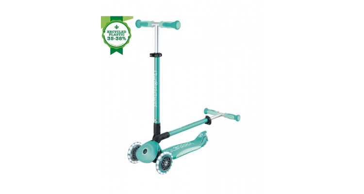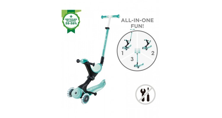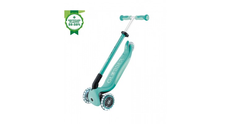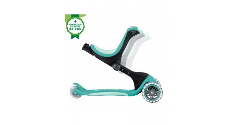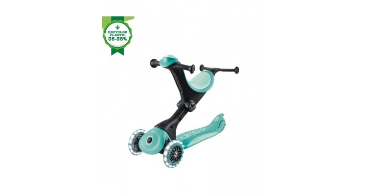 O lume mai verde pe roți: Trotineta Globber 4 in 1 Deluxe Lights, ECOLOGIC ajută familiile din întreaga lume să trăiască și să respire valorile și alegerile ecologice. Este fabricată din plastic 35-38% Global Recycled Standard și paie de grâu bio-sursă*. GO-UP ACTIVE ECOLOGIC este o trotinetă ecologică cu 3 roți și scaun pentru copii și copii mici, care se transformă în trotinetă de plimbare (15-36M), bicicletă de mers pe jos (15-36M) și trotinetă pentru copii mici (3-9Y+), având aceeași integritate structurală ca și originalul iconic, dar folosind mai multe materiale ecologice pentru un impact mai mic asupra mediului. Bucurați-vă de întâlniri de joacă prietenoase cu planeta cu un prieten din copilărie pentru anii următori: Mergeți la plimbare, cu bicicleta sau cu trotineta - doar mergeți, mergeți, mergeți pe plastic reciclat și paie de grâu bio-sursă! Trotineta Globber 4 in 1 Deluxe Lights, ECOLOGIC este fabricat cu 35 pana la 38% din plastic Global Recycled Standard (GRS) și paie de grâu bio-sursă*. GRS este un protocol internațional care verifică conținutul reciclat în produsele finale. Utilizarea plasticului GRS salvează tone de deșeuri de la gropile de gunoi și reduce impactul de mediu al producției. Paia de grâu este un bio-plastic obținut din deșeuri agricole. Acesta se sustrage din fluxul de deșeuri și este intrinsec durabil datorită compusului său lignină. Acest lucru permite trotinetelor noastre ECOLOGICE să își păstreze integritatea structurală cu un plastic bio-sursă care este 100% sigur pentru copii. Alege Globber. Alegeți mai ecologic! Trotineta Globber 4 in 1 Deluxe Lights, ECOLOGIC, este o trotineta EVOLUTIVA, 4 IN 1 ce se transforma usor, potrivit varstei copilului, aceasta putand fi folosita incepand cu varsta de 15 luni. Modul Ride-onModul ride-on permite părinților să manevreze trotineta cu un mâner pentru părinți, în timp ce copiii stau confortabil pe scaun. Copiii mici care încă își dezvoltă echilibrul și coordonarea necesare pentru a merge pe trotinetă independent pot să se bucure în continuare de distracția de a se plimba insa cu puțin ajutor! Modul Bicicletă fără pedaleConstruiește încrederea și îmbunătățește echilibrul micuțului tău cu modul bicicletă fără pedale! Cu bicicleta fără pedale, copiii pot folosi picioarele pentru a se împinge, obișnuindu-se treptat cu senzația unei biciclete și învățând cum să-și mențină echilibrul. Este o modalitate distractivă și sigură pentru copii de a învăța să meargă, construind încrederea de care au nevoie pentru a progresa rapid la mersul pe trotinetă obișnuită! Modul TrotinetăComută la modul trotinetă și folosește GO•UP ca pe o trotinetă ! Modul trotinetă permite micuțului tău să folosească GO•UP ca o trotinetă cu 3 roți pe măsură ce crește și devine mai încrezător—fără achiziții suplimentare necesare! Este modalitatea perfectă de a-ți tranziționa micuțul de la un ride-on la o trotinetă tradițională. Modul depozitare si transport Sistemul patentat de pliere permite plierea in mod cărucior a trotinetei pentru copii mici. Cu un buton lateral ușor de utilizat, transportați și depozitați cu ușurință Globber Go-Up 4 in 1 Deluxe Lights, ECOLOGIC în spații compacte. Sistem de blocare a direcției patentat Învață piciorușele să se echilibreze pe o trotineta 3-în-1 cu lumini in ritmul copilului tău. Globber Go-Up 4 in 1 Deluxe Lights, ECOLOGIC are un sistem de blocare a direcției patentat exclusiv Globber: Roțile din față sunt fixate într-un mișcare verticală înainte și înapoi, permițând copilului tău să practice echilibrul și să câștige încredere în mersul cu trotineta. Odată ce sunt gata să meargă, eliberează pur și simplu butonul de blocare a direcției pentru a putea începe să vireze roata și să meargă cu trotineta de unul singur! Design 100% fără unelte Designul 100% fără unelte îți permite să treci ușor între diferite moduri fără a avea nevoie de unelte sau șuruburi - GO•UP DELUXE CU LUMINI are butoane și manete cu arc pentru a se transforma fără probleme de la modul de ride-on, bicicletă fără pedale și trotinetă fără a avea nevoie de unelte. Platformă robustă și roți luminoase fără baterie GO•UP DELUXE CU LUMINI ECOLOGIC este echipată cu o structură super-solidă din metal care suportă până la 50kg și o platformă din compozit antiderapantă și largă pentru plimbări în siguranță. Dispune de roți față de 121mm din PU de înaltă calitate cu LED-uri, fără baterie, care clipesc în roșu, verde și albastru, montate pe rulmenți ABEC 5, și o roată din PU de 80mm în spate care oferă plimbări line. Frâna din material compozit din spate, extra-lungă și largă, oferă eficiență la frânare, iar un suport de picior detașabil este inclus pentru confort și siguranță suplimentară în modul de utilizare cu scaun. Caracteristici: Trotineta eco all-in-one, cu scaun care se transformă într-o bicicletă fara pedale și într-o trotinetă pentru copii mici. Modurile ride on si bicicletă fara pedale sunt concepute pentru copiii cu vârsta cuprinsă între 15-36 de luni, iar modul trotineta este pentru copiii cu vârsta cuprinsă între 3 și 9 ani. Fabricat cu 35 pana la 38% din plastic reciclat și paie de grâu din surse biologice*, o alegere sustenabila pentru familii. Trotineta reglabila cu scaun: scaun TPR reglabil cu 2 înălțimi (25, 5 cm sau 29 cm de la sol), reglat printr-un buton lateral fără unelte și o ghidon reglabil cu 4 înălțimi (67, 5 cm, 72, 5 cm, 77, 5 cm, 82, 5 cm de la sol) pentru o plimbare confortabilă. Structura sa foarte joasă, ranforsata cu metal suportă până la 50 kg (in modul trotineta ) și vine cu o platforma compozită lata, anti-alunecare, pentru o plimbare în siguranță. Suportul pentru picioare detașabil lung și lat este inc