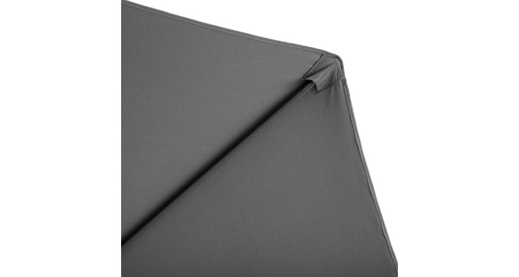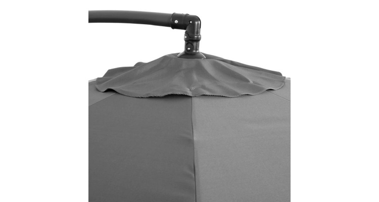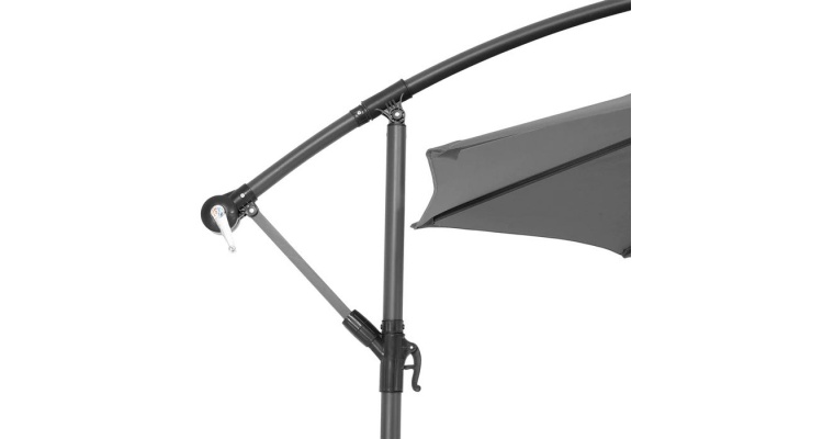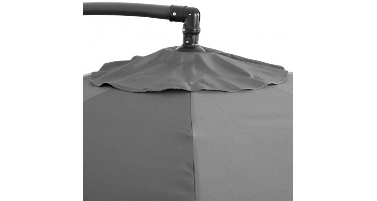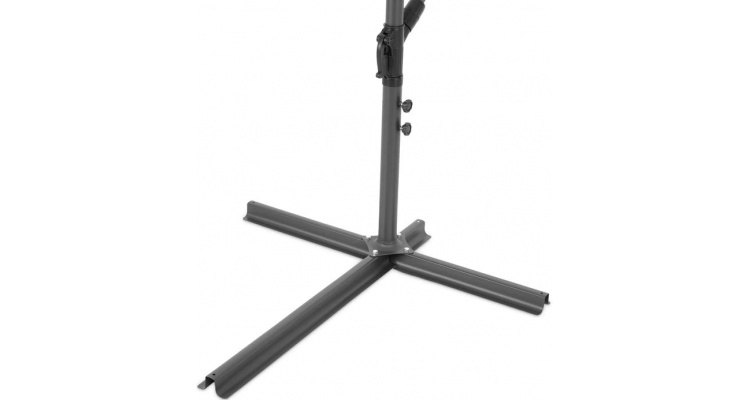 Realizata din otel vopsita in camp electrostatic. Copertina(palaria) este realizata din poliester 180g cu protectie impotriva umezelii si a razelor UV. Include baza din otel, nu include pietre(greutatile) pentru baza.