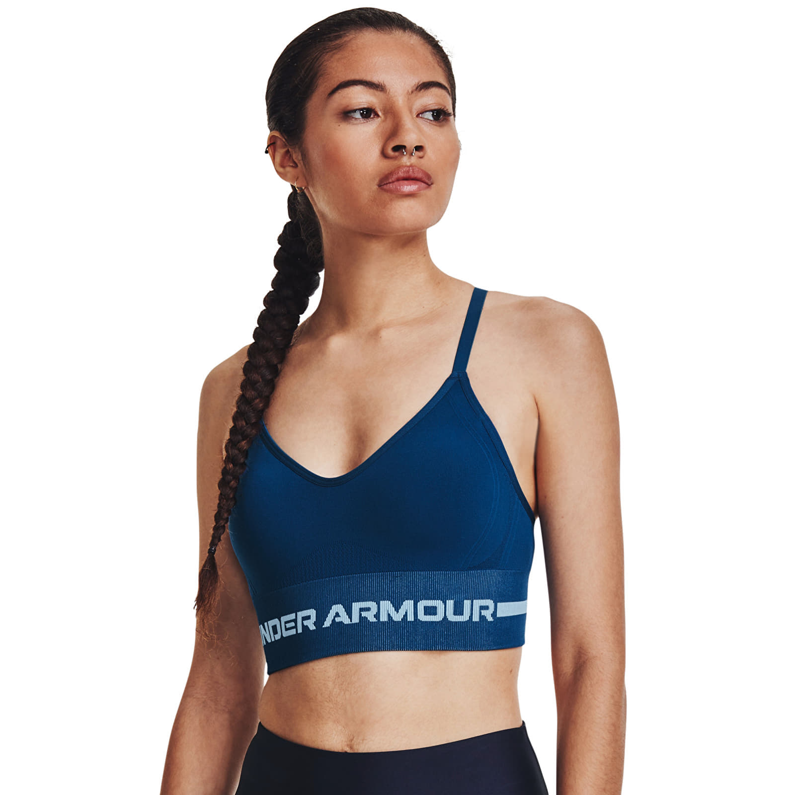 Under Armour Seamless Low Long Bra Blue pentru 160 lei. Cod produs: 1357719-426, material: 12% Elastan / 88% Poliester