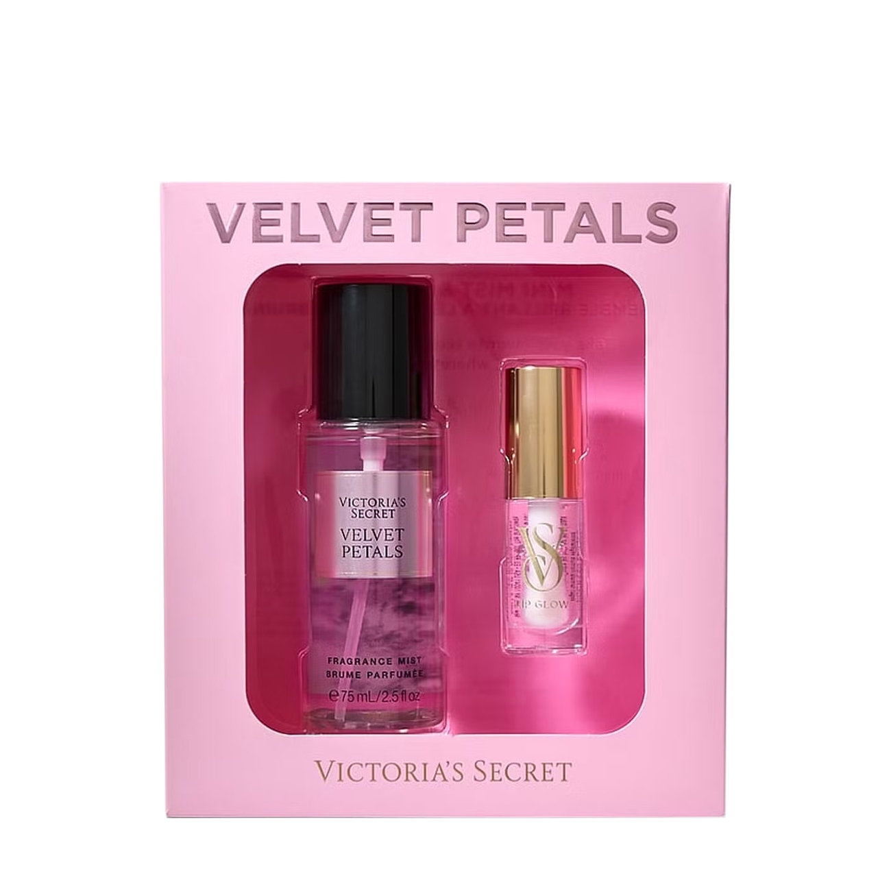 Setul cadou Victoria’s Secret Velvet Petals Mist Collection conține un spray de corp de 75 ml și un luciu de buze transparent cu efect de volum, perfecte pentru o aromă seducătoare și un look strălucitor. Parfumul floral-fructat îmbină note gurmande, oferind o senzație proaspătă și feminină. Ideal pentru a fi oferit în dar sau pentru a-ți răsfăța simțurile.