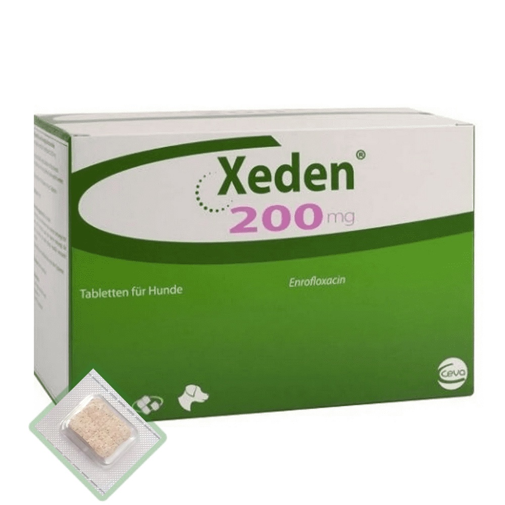 XEDEN - antibiotic oral de uz veterinar pentru tratamentul infectiilor tractului respirator superior la caini Indicatii : In tratamentul infectiilor tractului urinar inferior (asociate sau nu cu prostatita) si infectiilor tractului urinar superior cauzate de Escherichia coli sau Proteus mirabilis; In tratamentul piodermitei superficiale si profunde. Substante active : Enrofloxacina 50mg / 200 mg Cantitati de administrat : Doza recomandata: 5 mg enrofloxacina / kg greutate corporala o data pe zi, echivalent cu un comprimat pentru 40 kg, zilnic, timp de: - 10 zile in infectiile tractului urinar inferior; - 15 zile in infectiilor tractului urinar superior si in infectiile tractului urinar inferior asociate cu prostatita; - pana la 21 de zile in piodermita superficiala depinzand de raspunsul clinic. Tratamentul trebuie recalculat in cazul in care nu apar imbunatatiri clinice pana la jumatatea perioadei de tratament. Pentru a asigura o dozare corecta, se va determina greutatea corporala cat mai exact posibil, pentru a evita supradozarea. Comprimatele sunt aromate si sunt bine acceptate de caini. Comprimatele pot fi administrate direct in gura cainelui sau simultan cu mancarea, daca este necesar. Precautii speciale pentru utilizare : Flourochinolonele ar trebui rezervate pentru tratamentul bolilor clinice care au reactionat slab sau care se asteapta sa reactioneze slab fata de alte clase de antimicrobiene. De cate ori este posibil, fluorochinolonele ar trebui utilizate in baza rezultatelor testului de sensibilitate bacteriana. Utilizarea produsului in afara instructiunilor mentionate in RCP poate cauza cresterea prevalentei rezistentei bacteriilor fata de fluorochinolone si poate scadea efectul tratamentului cu alte chinolone datorita rezistentei incrucisate a acestora. Regulamentele locale si oficiale cu privire la antimicrobiene ar trebui luate in considerare inaintea administrarii acestui produs. Administrati produsul cu grija la cainii cu afectiuni severe hepatice si renale. Piodermita este de obicei secundara la o boala preexistenta. Este recomandat sa se determine cauza primara si sa se trateze animalul in consecinta. Comprimatele masticabile sunt aromate. Pentru a evita orice ingestie accidentala, nu lasati produsul la discretia animalelor. Utilizare in perioada de gestatie, lactatie sau in perioada de ouat Utilizarea in timpul gestatiei : Studiile de laborator efectuate pe animale (sobolan, sinsila) nu au demonstrat ca enrofloxacina ar avea efect teratogen, fetotoxic sau maternotoxic. Utilizati produsul numai dupa evaluarea raportului beneficiu/risc de catre medicul veterinar. Utilizarea in timpul lactatiei : Datorita faptului ca enrofloxacina trece in laptele matern, administrarea sa nu este indicata in timpul lactatiei. Contraindicatii : A nu se administra cainilor tineri sau in crestere (cu varsta mai mica de 12 luni pentru rasele mici sau sub 18 luni pentru rasele mari) datorita posibilitatii aparitiei leziunilor la nivelul cartilajului epifizar. A nu se administra produsul in cazul in care exista rezistenta la chinolone si rezistenta completa incrucisata fata de alte fluorochinolone. A nu se administra cainilor cu tulburari convulsive deoarece enrofloxacina poate cauza stimularea SNC. A nu se administra impreuna cu tetracicline, fenicoli si macrolide datorita posibilitatii aparitiei efectelor antagoniste. Reactii adverse : Posibile alterari ale cartilajului articular la cateii in crestere. In cazuri rare, se observa voma si anorexie. In cazuri rare, pot aparea reactii de hipersensibilitate. In acest caz, administrarea produsului trebuie intrerupta. Pot aparea semne neurologice (convulsii, tremur, ataxie, agitatie)
