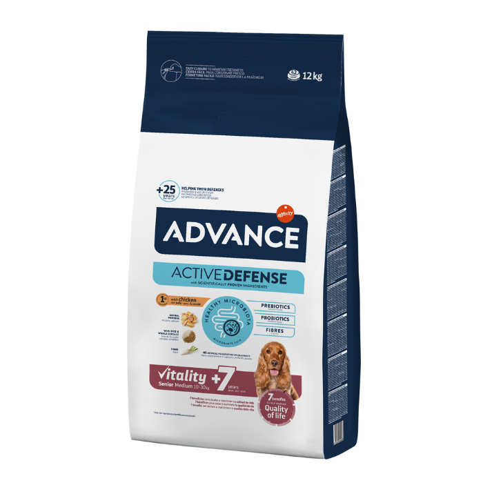 Hrana uscata pentru caini senior Advance Medium Vitality +7, Pui, 12 kg