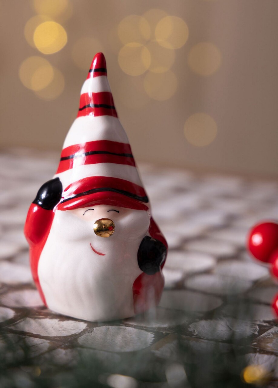 Decoratiune, SUS0163, 7x5x10 cm, Ceramica, Rosu/Alb