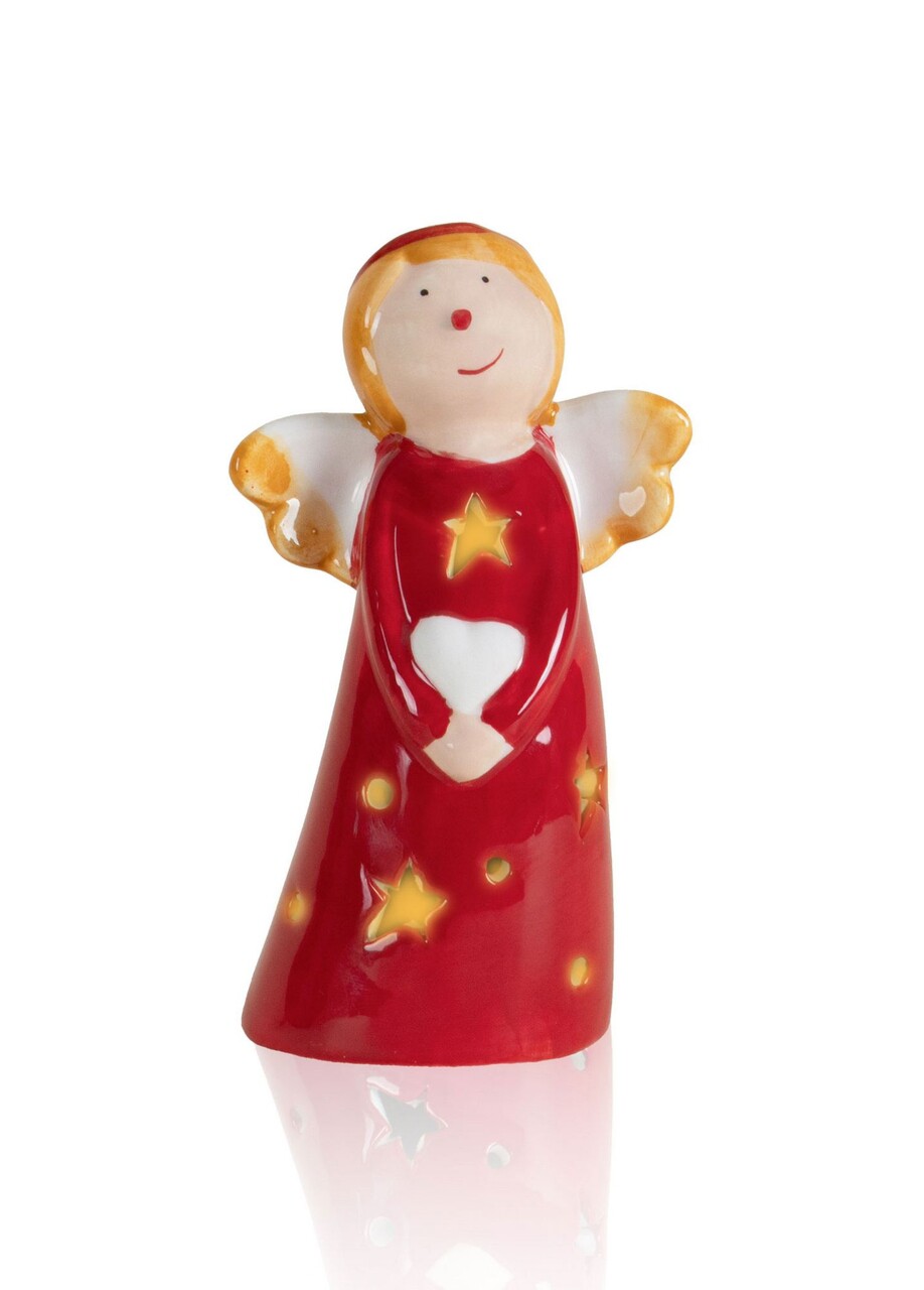 Decoratiune, SUS0148, 7x6x10 cm, Ceramica, Rosu/Alb