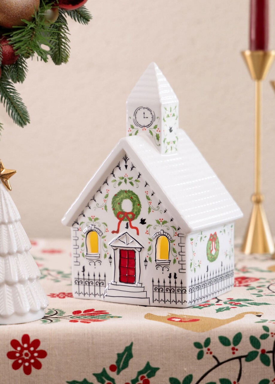 Ornament de brad de Crăciun, BSY521, Ceramica, Alb/Rosu