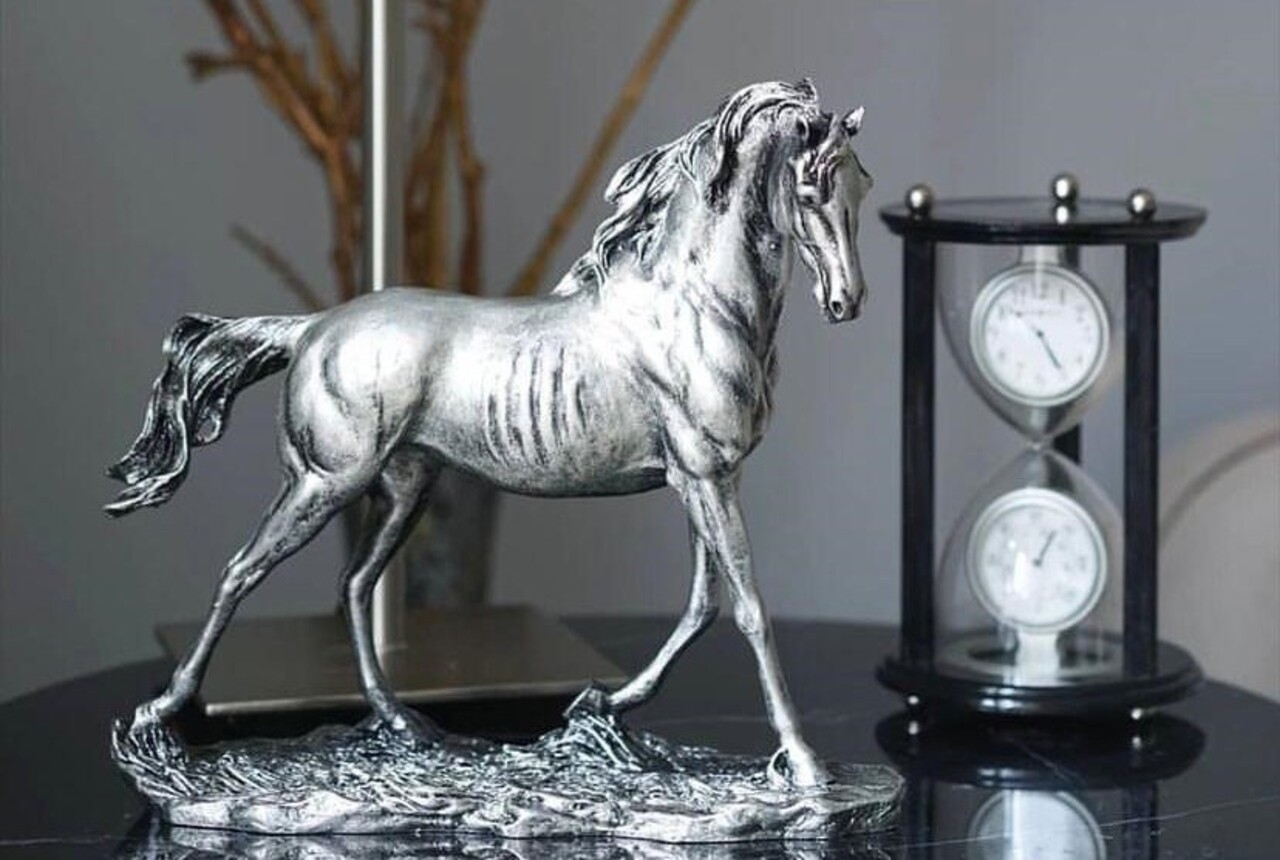 Decoratiune, CY0384, 32x8x17 cm, Poliester, Negru/Argintiu