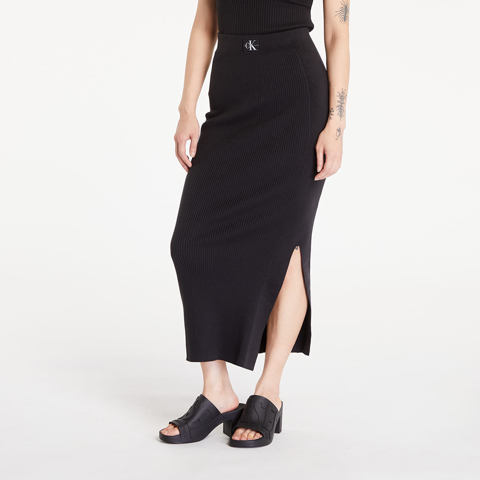 Calvin Klein Jeans Soft Ribbed Lyocell Maxi Skirt Black