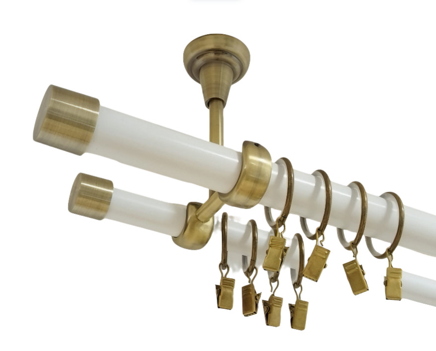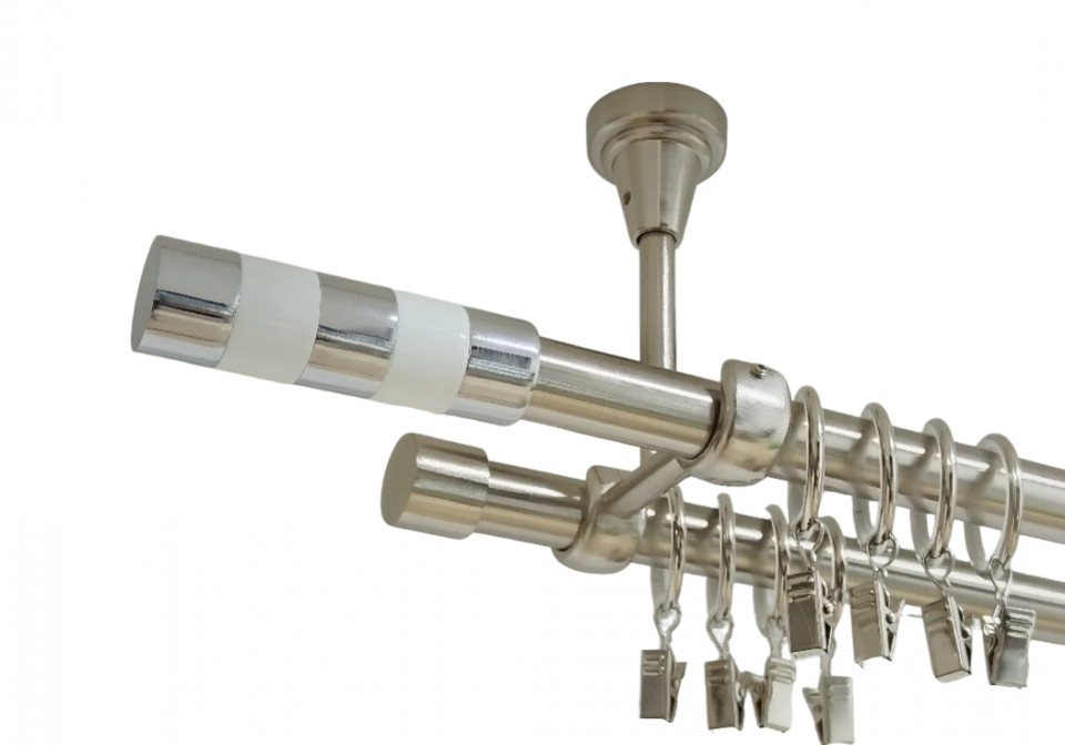Galerie dubla cilindru alb fara inele prindere tavan 19/19 mm inox