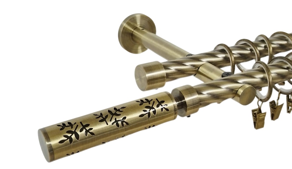Galerie dubla twist prindere perete picior universal flora 19/19 aur antic