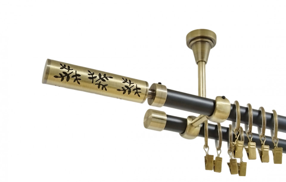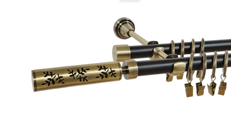 Galerie dubla duo FLORA 19/19 mm negru aur antic