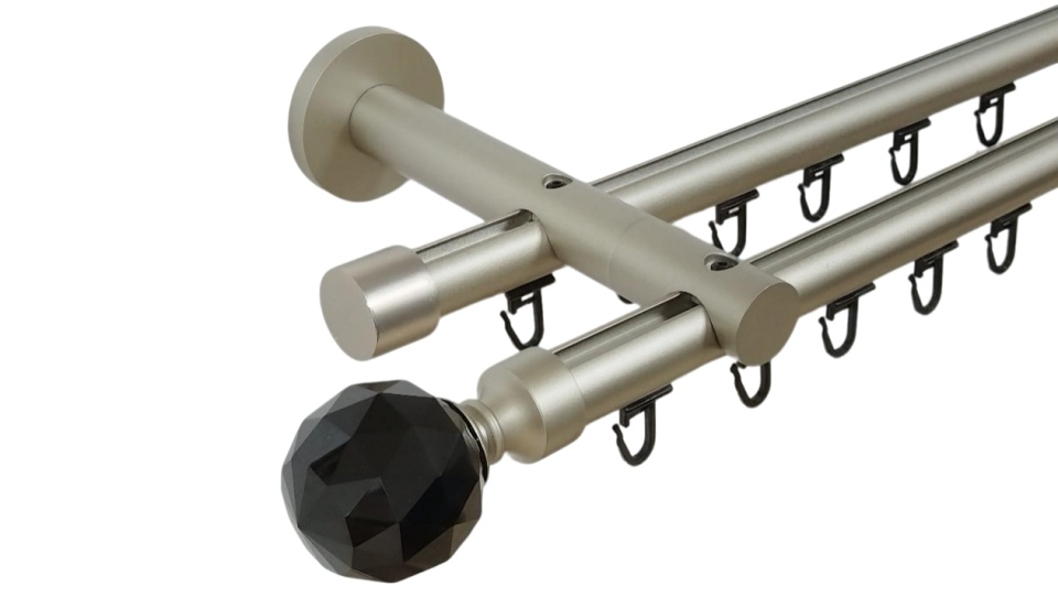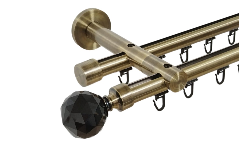 Galerie dubla kula crystal fara inele prindere tavan 19/19 mm negru aur antic