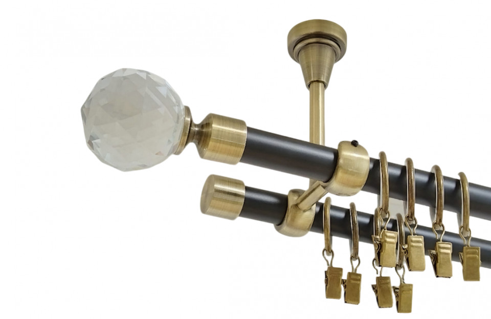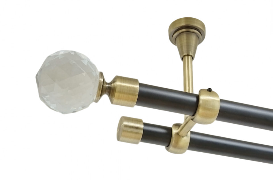 Galerie dubla kula crystal prindere tavan 19 mm negru aur antic