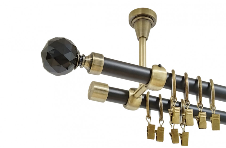 Galerie dubla kula crystal negru prindere tavan 19 mm negru aur antic
