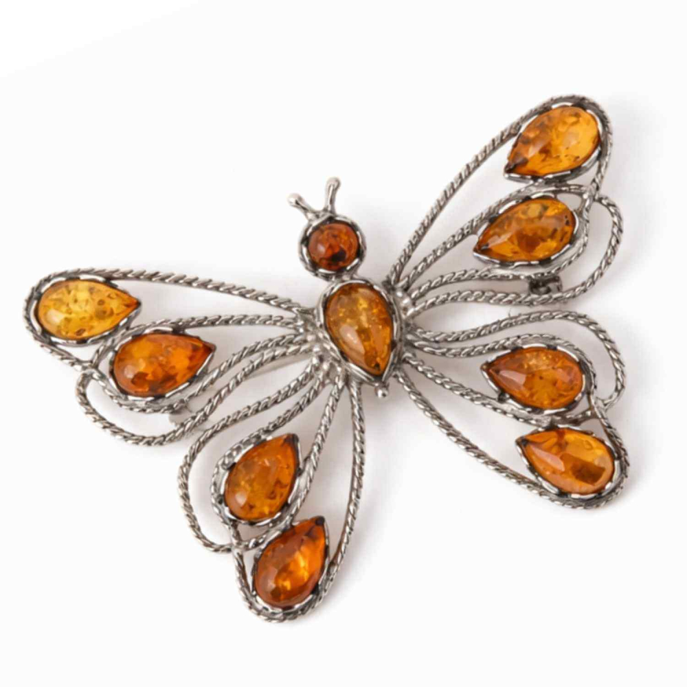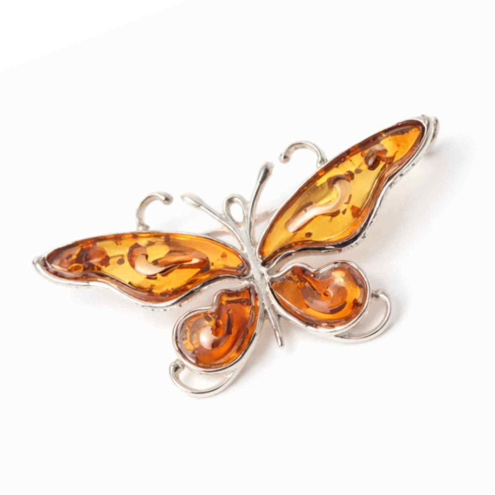 Inel fluture din argint 925 si chihlimbar- Simbol al transformarii blande si al luminii interioare