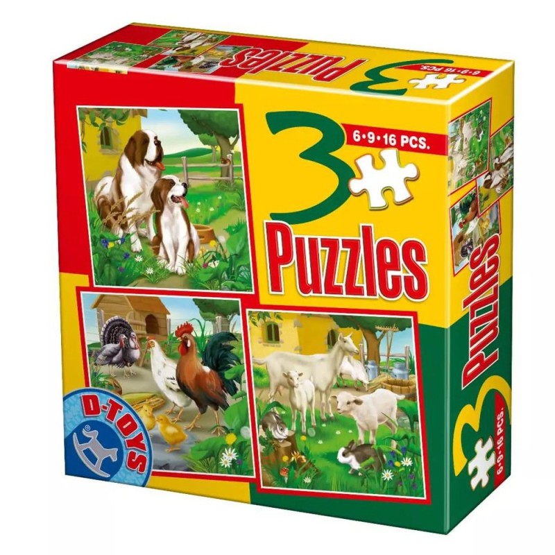Colectie 3 Puzzle Copii, 6, 9, 16 Piese, Animale Domestice Mari