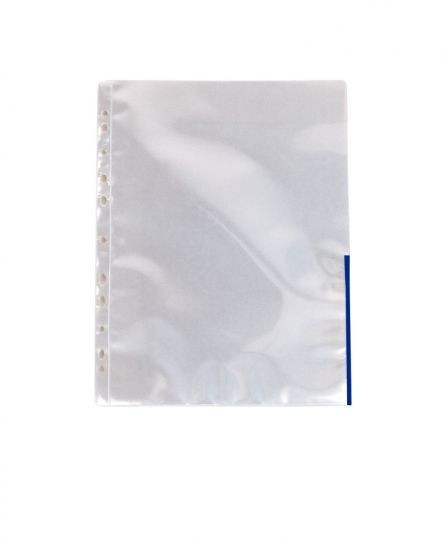 Folie de protectie Esselte A4 105 microni deschidere superioara si lateral dreapta cu margine color 100 bucati/set Folie de protectie Esselte A4 105 microni deschidere superioara si lateral dreapta cu margine color 100 bucati/set albastru