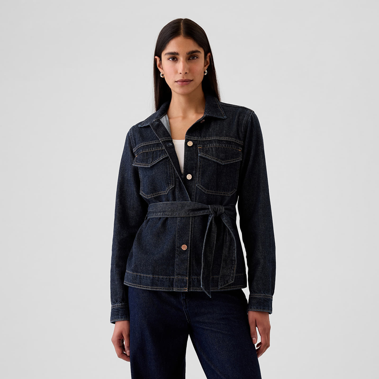 Jacheta GAP Belted Featherweight Jacket Dark Wash Indigo