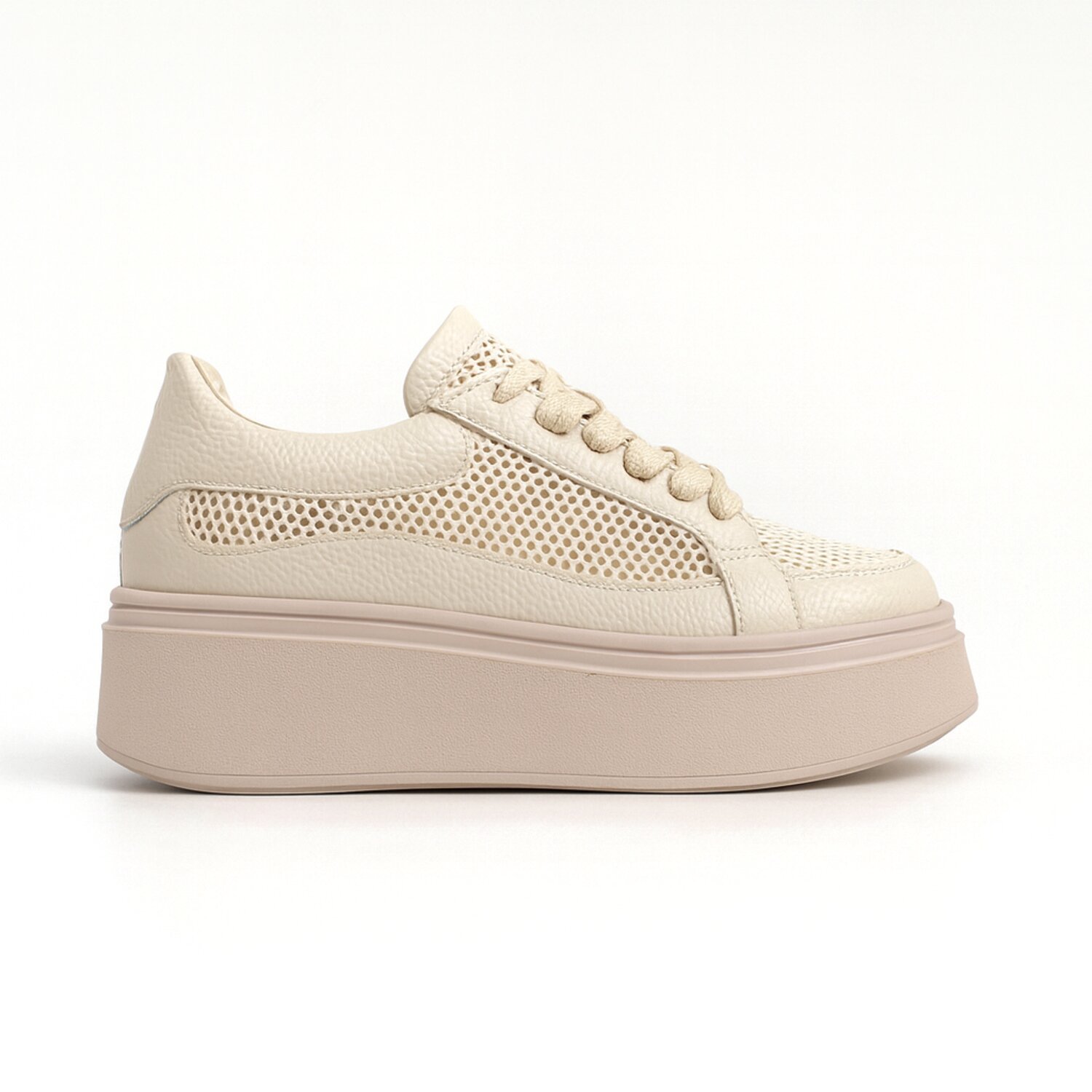 Pantofi casual Piele Naturala Bej cu textil broderie Dami