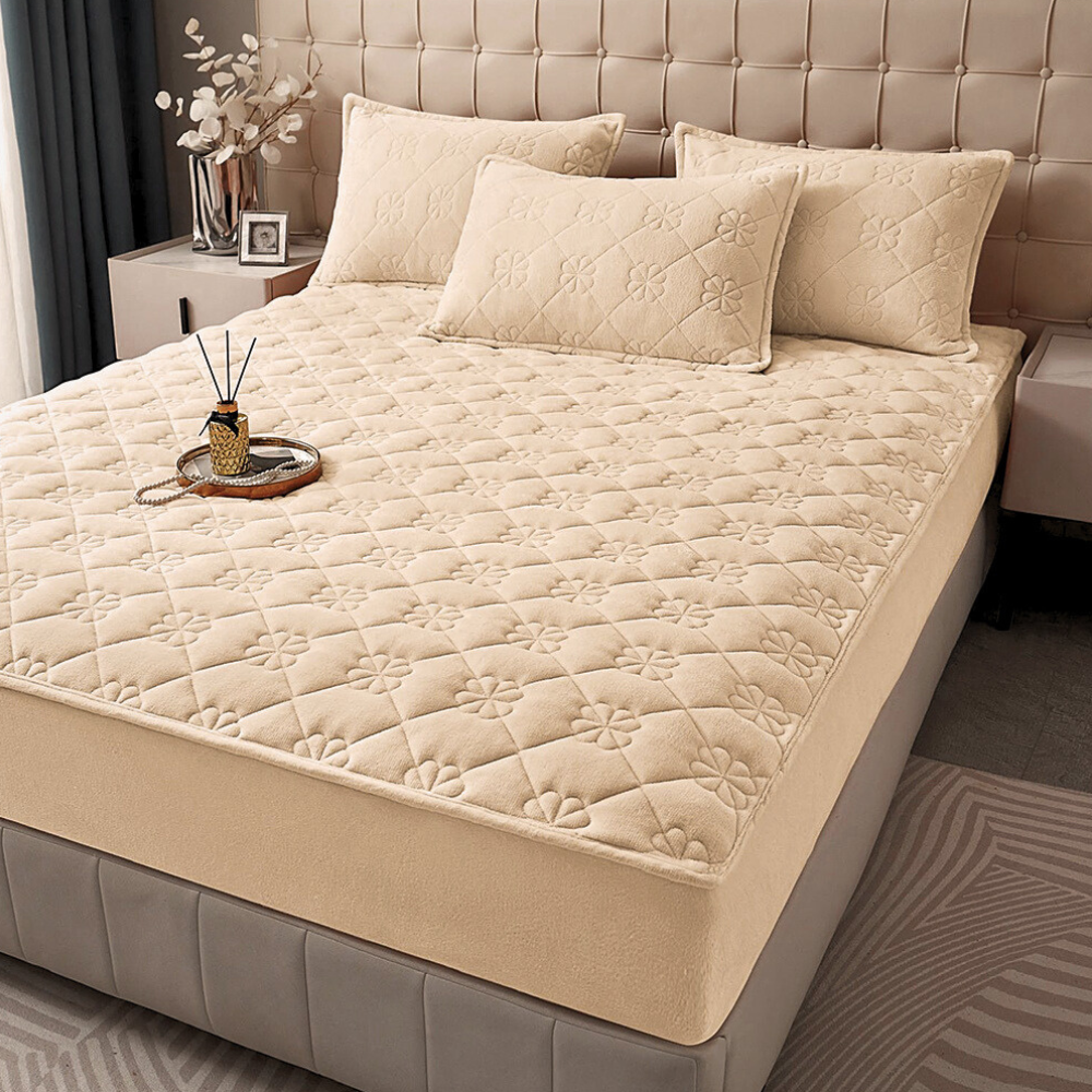 ConfortSoft - Husa de Pat Premium din Catifea Matlasata 180x200 + 2 Fete Perna - Maro Deschis - CECTF_M089