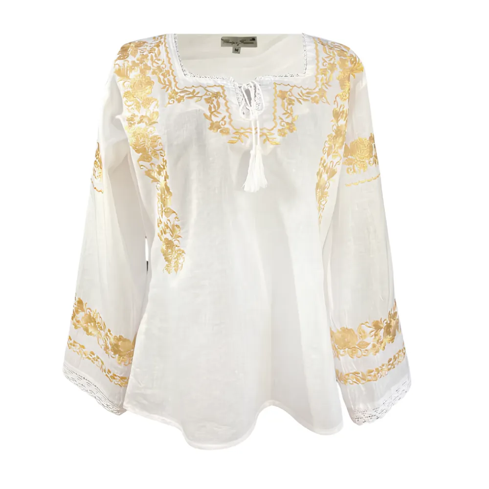 Bluza Alba cu Motiv Floral Auriu - BMG176