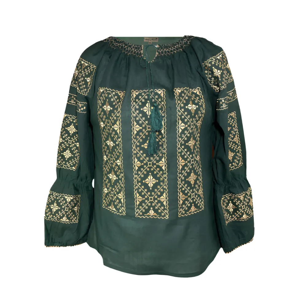Bluza Verde cu Motiv Geometric Auriu - BMG174V